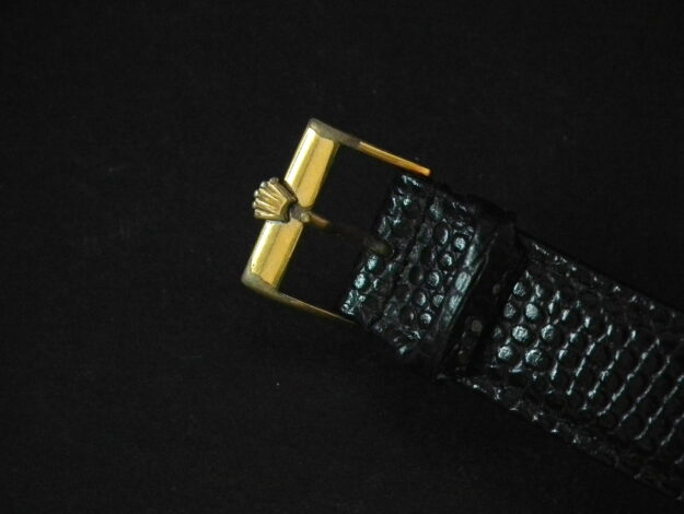 This is a genuine gold plated 16mm Rolex buckle from the 1950’s/60’s. It’s lost quite a lot of the plating but is still very beautiful. It’s signed ‘Rolex SA Swiss’ and ‘Plaque Depose’ on the back. The strap is not Rolex and only to allow photographing