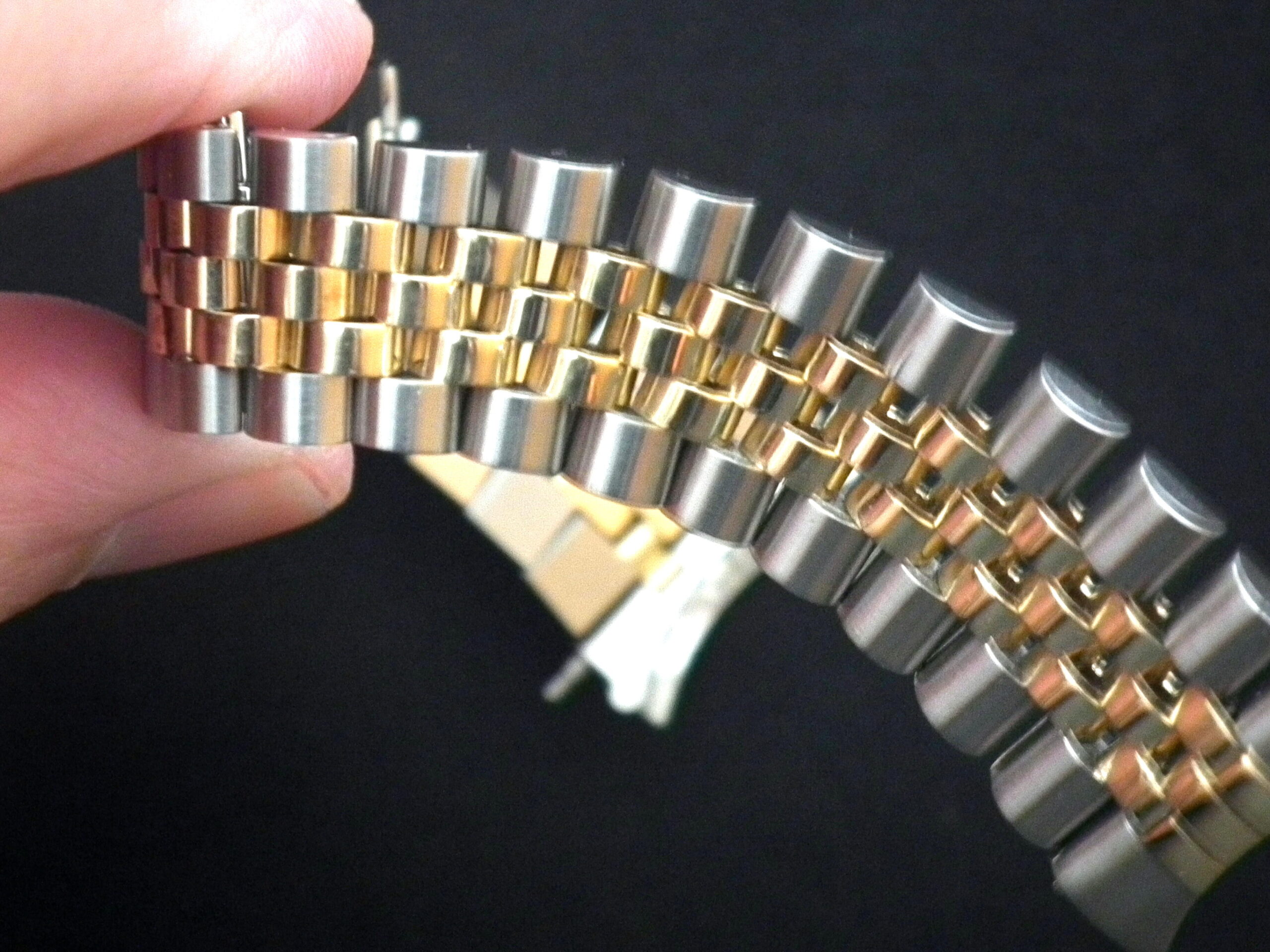 This is a genuine steel and solid 18ct gold Rolex Jubilee bracelet for a Datejust from 1979. It’s in excellent aesthetic condition with relatively limited sag and stretch – it may have been re-pinned a while ago. A new bracelet retails at around £3,500…..