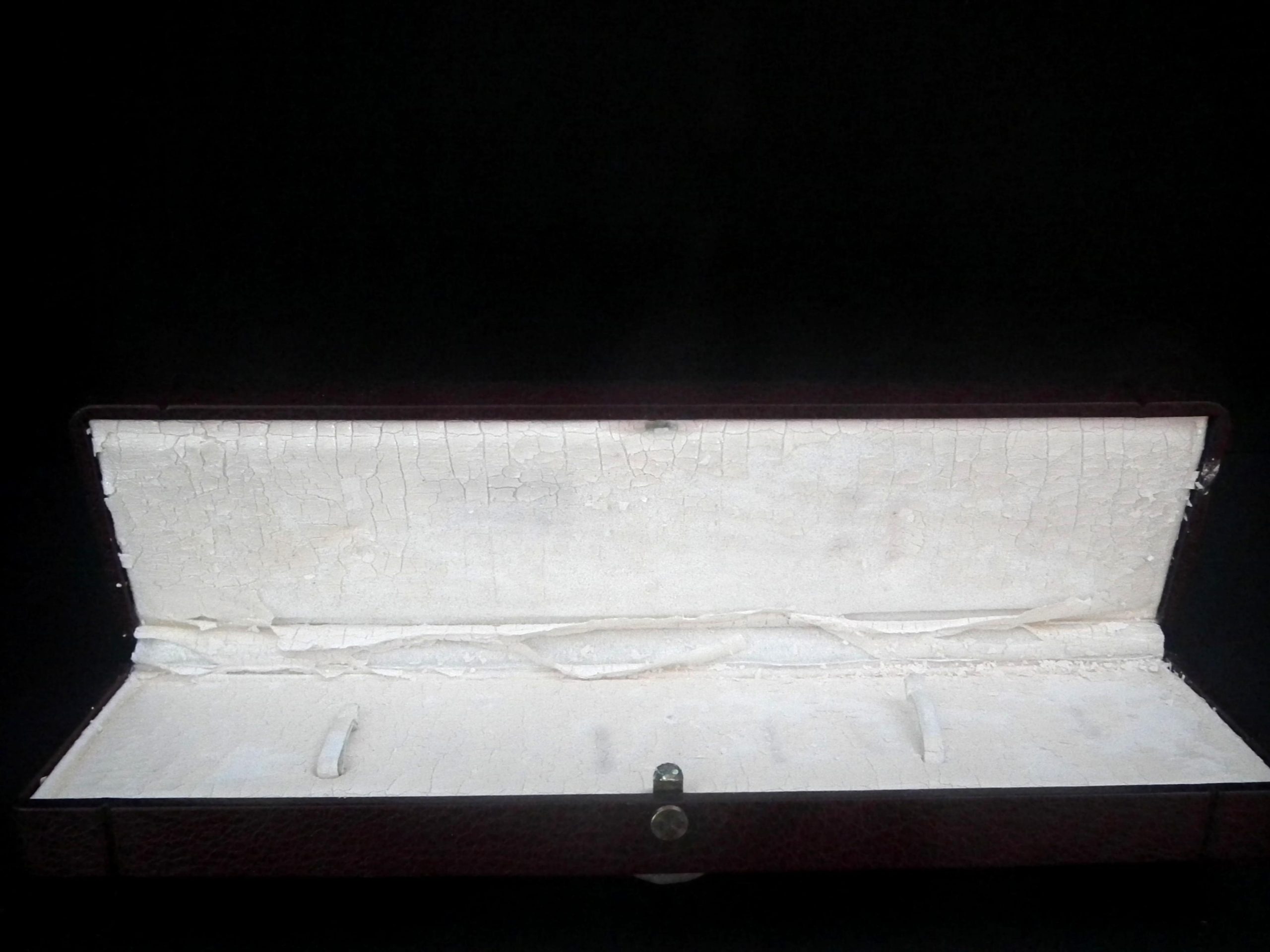 This is a genuine Patek watch box from the 1980/90’s and very rarely we also have the outer box. The interiors of these boxes suffered badly from flaking and I’ve tried to capture this on the photographs.