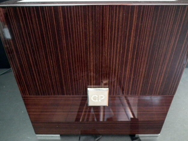 One of our clients is a specialist box maker and one of his clients bought a GP and asked them to make a bespoke box (12 years ago). He was left with this box and we bought it. It’s finished in dark brown piano wood and has a leather watch holder and built in winder. The outside is in very good condition and the inside the same but does have a few tears in the leather just under the winder and on the sides. I’ve tried to capture these but happy to take more pictures if required. It’s very heavy so we will need to raise the postage to £30 and for overseas shipping please mail for a quote. It measures 23cm squared.
