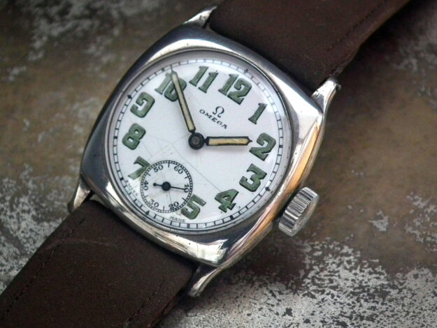 SPARES OR REPAIR – 1931 Solid Silver Omega Trench Style Watch – Working
