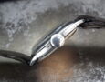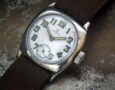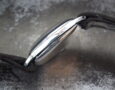 This is a very rare Omega from 1931 (dated from the movement number – 7.2million). It’s working though we are selling it for spares or repair. We believe the dial (ceramic and cracked) and hands are original and the case was made by Dennison who made cases for a number of the major Swiss brands at this time to avoid import duties. The Omega signed manual wind movement seems to be in good condition and it is winding and driving the second hand. The watch sits on a genuine Omega open ended strap which is tatty.