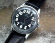 We bought a package of watches many years ago and this is one that we didn’t retail. The steel case, movement and dial are in good condition but the Omega signed crown falls out and isn’t connected to the movement. The case measures 34mm across excluding the crown and 43mm long including the lugs.