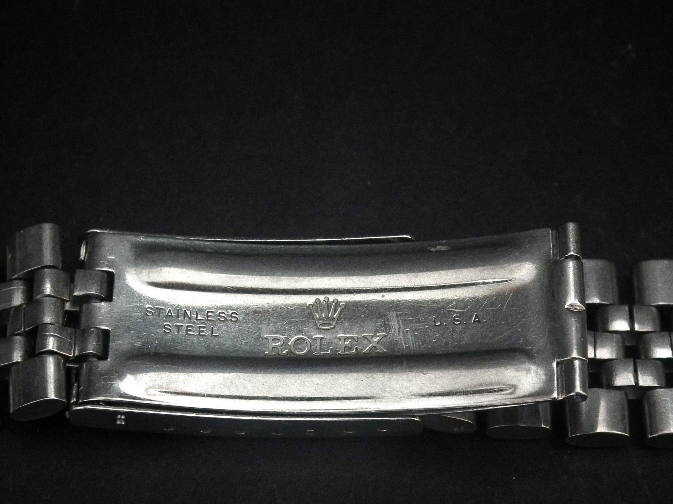 This is one of the rarest Rolex Jubilee bracelets – made by Rolex for the USA market (mainly Datejusts). It’s in good aesthetic condition but does have huge sag/stretch (it can be re-pinned for around £450) and there are very few in the World. It’s signed: