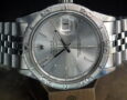 This is a collector standard example of the iconic Rolex Datejust Turn-O-Graph watch from 1979. First introduced in 1953, the rotating bezel. It was adopted by the Thunderbird Squadron in the USA and still carries the name ‘Thunderbird Bezel’. It was added to the Datejust in the early 1960’s as an option alongside the fluted and smooth bezels. All that’s great but to be frank it just looks fabulous.