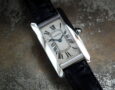 Formed in the 1940’s Cartier have become one of the most beloved watch makers with their distinctive style and iconic blue stone winding crown. The solid 18ct white gold case is in excellent condition with only the most minor signs of wear. The original paper white Cartier signed dial is again in excellent condition. The quartz movement has just been serviced and battery replaced. The watch sits on a used but in very good condition black Cartier alligator strap with solid 18ct white gold Cartier signed buckle.