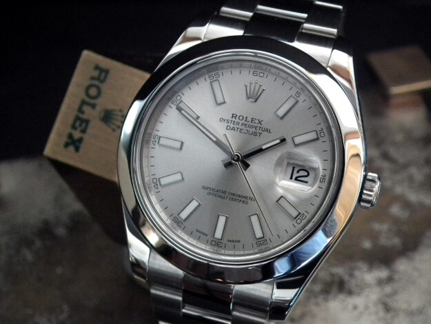 This is a beautiful example of the iconic Rolex Datejust II 41 from 2013 – 2015. The solid steel case is in excellent condition with only minor signs of wear. The original and stunning Rolex signed steel pearlescent dial is again in excellent condition. The very high grade calibre 3136 Rolex signed automatic movement has just been serviced by our professional watchmaker. The watch sits on the original Rolex Oyster bracelet which is again in excellent condition with only minor signs of wear. Whilst we don’t have the original warranty card we do have a genuine Rolex box, inner and outer, from this period.