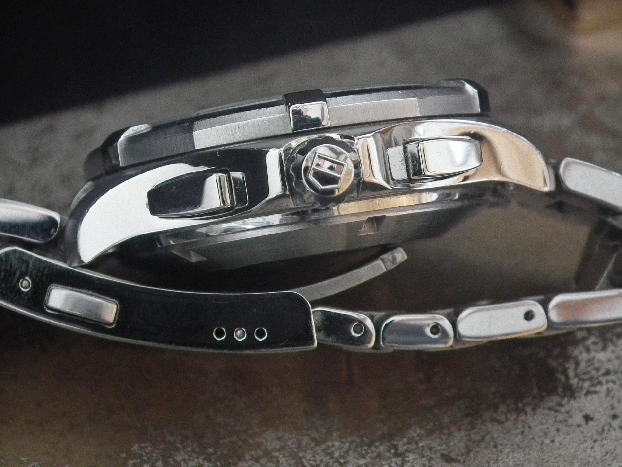 The case measures 43mm across excluding the Tag signed crown and 49mm long including the lugs.