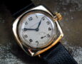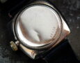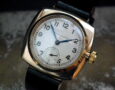 This is the larger size at 32mm across excluding the winding crown. The solid 9ct gold (yellow) case is in very good condition with some mild tarnishing and scratches and a couple of minor dings on the outside case back. Very rarely the serial number is on the outside case, 38138, dating it to 1937. It also a genuine ‘Patent Oyster’ gold screw down winding crown (many come with generic crowns). The Rolex Crown was only registered in 1943. The ivory/paper Rolex signed dial is again in very good condition. The black painted Arabic hour numbers, railway line minute markers, Sub-Second dial and blued steel hands create a stunningly simple look. The original Rolex signed manual wind movement is in excellent condition and has just been serviced by our professional watchmaker (whilst the movement is fairly robust it will gain/lose 2 minutes/day and we wouldn’t recommend this for anything other than special occasions). The watch sits on a new black Hirsch crocodile skin skin strap with gold plated Hirsch buckle.
