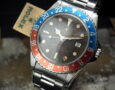 This is a simply beautiful example of the iconic Rolex GMT Master 1675 from 1964. The solid steel case is in excellent condition with only minor signs of wear – there’s the remains of a sticker on the outside case back which we believe is the original 1675 sticker but it’s impossible to confirm this. The pointed crown guard case will have been polished a number of times but it retains its ‘meatiness’. The original Rolex signed dial has aged to a beautiful tropical brown and the batons and hands to a lovely mushroom colour. Very rarely it has the original smaller triangle on the GMT hand (these were nearly always replaced with a thicker and larger triangle). The original Rolex signed automatic movement is again in excellent condition and has just been fully serviced by our professional watchmaker. We’ve added a genuine 1960’s Rolex ‘rivet’ bracelet which has 12 links and is in overall excellent condition. This watch is simply magnificent.