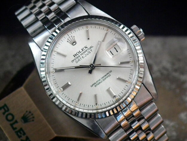 This is a beautiful example of the iconic Rolex Datejust quick date set (allows the date to be set without moving the hands around the dial) from 1979. The steel and solid white gold (bezel) case is in overall excellent condition with only a few minor signs of wear. The original and untouched Rolex signed silver pearlescent dial is again in excellent condition and looks stunning – the applied steel hour batons and steel hands flow beautifully into the pearlescent/sun burst dial and are perfectly framed by the solid white gold fluted bezel. The super high grade chronometer standard movement is again in excellent condition and has just been fully serviced by our professional watchmaker. We also have what we believe is the original Rolex Jubilee bracelet. It has a lot of ‘sag’ but aesthetically it’s excellent and safe. We will also include a super high quality Hirsch ‘London’ alligator strap if required (retail £230). Very rarely we also have the following provenance: