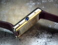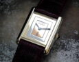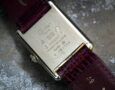 We are selling a number of watches for a collector and this is a lovely example of a once gents Cartier but the size and to be frank the style is very much a ladies watch now. The solid silver with heavy gold plate case is in excellent condition with only the most minor signs of wear. The original tri-colour gold – white, yellow and rose – dial is again in excellent condition. Our watchmaker is servicing the manual wind movement and I’ll ask him to take pictures of it and the inside case. The watch sits on a beautiful dark tan crocodile skin strap with gold plated buckle (not Cartier).
