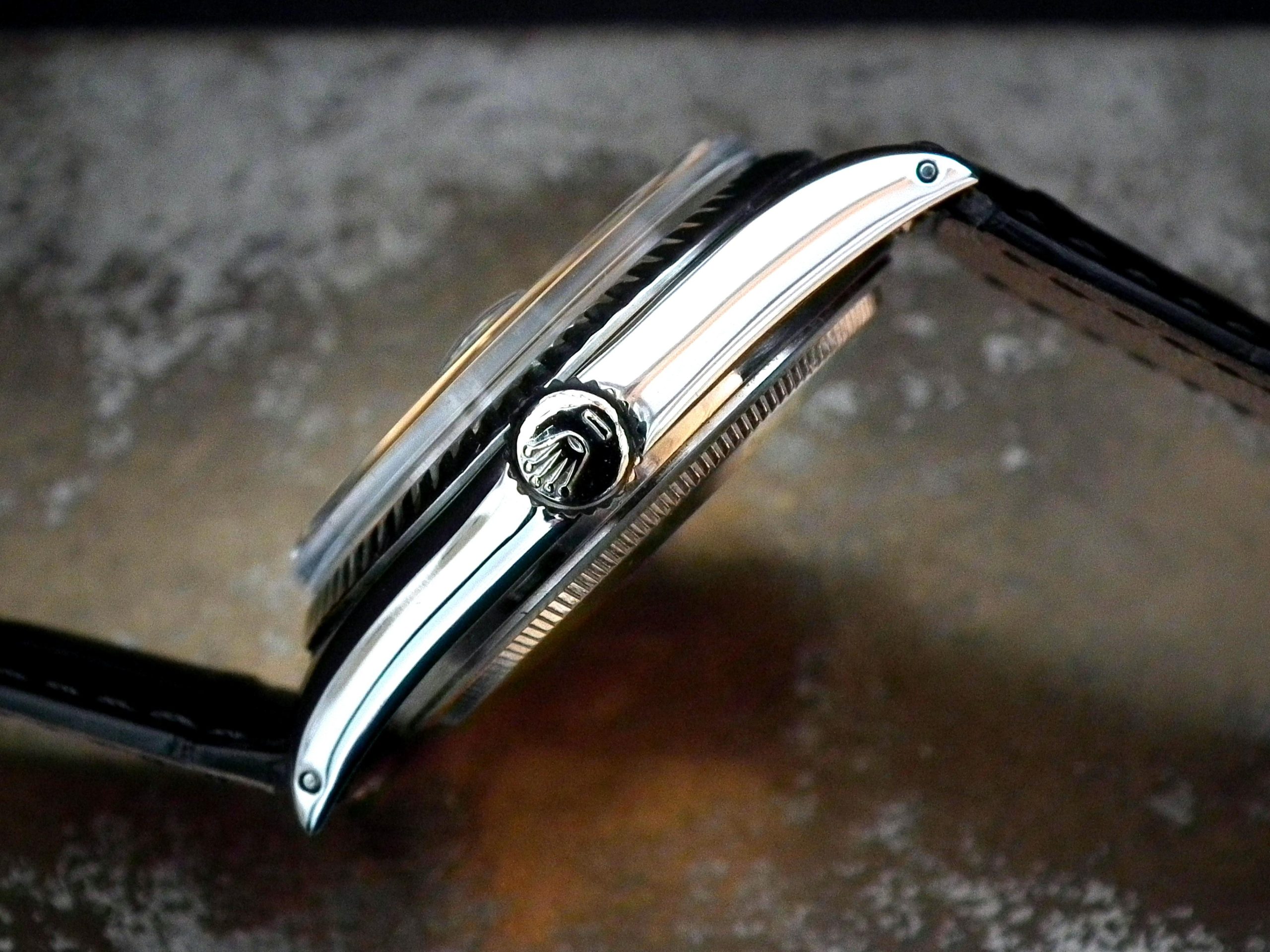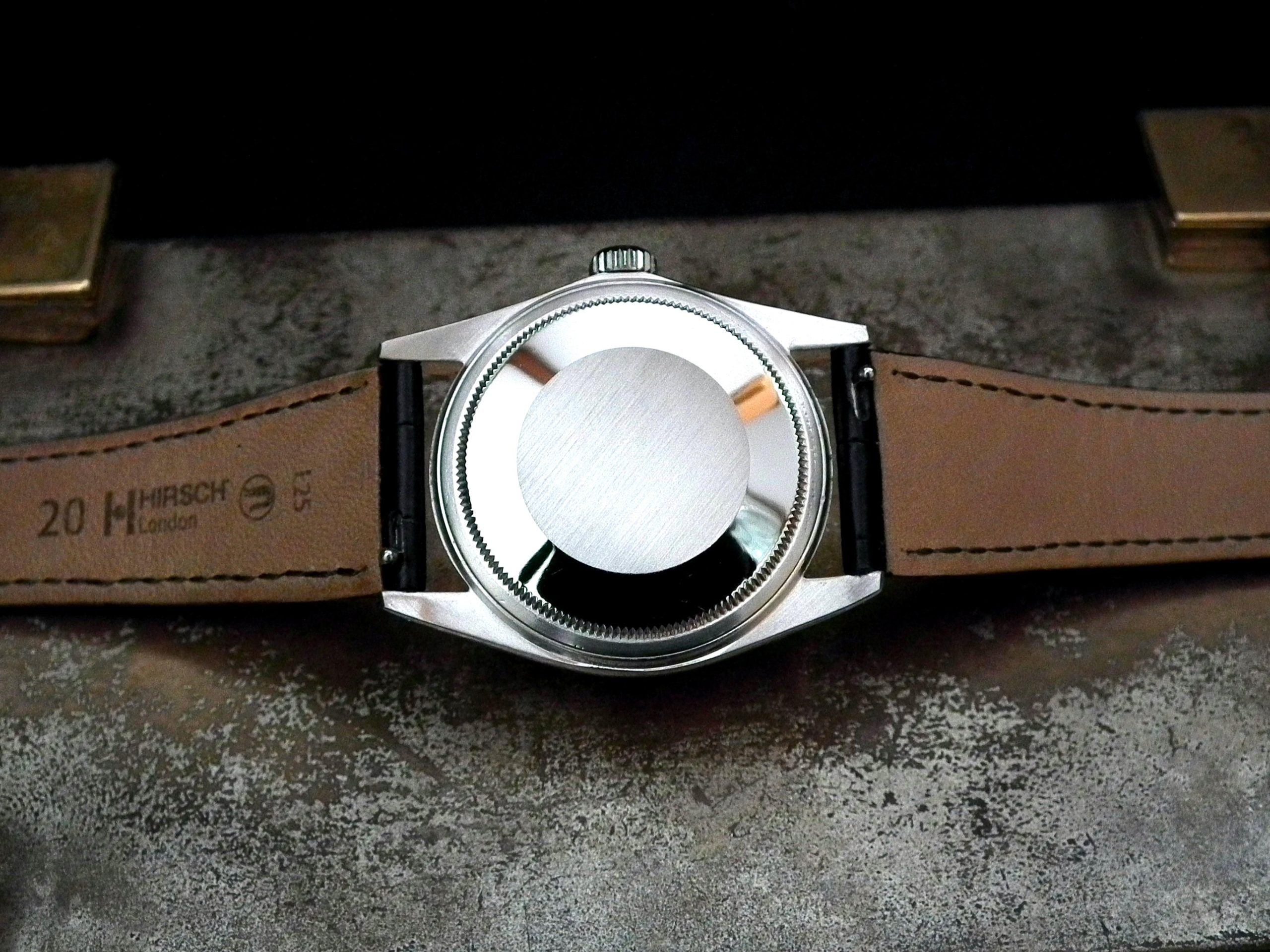 This is a beautiful example of the iconic Rolex Datejust from 1988 – it’s also the quick date set model which allows the date to be set without turning the hands around the dial twice. The steel and solid white gold (fluted bezel) case is in excellent condition with only the most minimal signs of wear. The original Rolex signed steel pearlescent dial is again in very good condition with only some minor signs of wear. I’ve tried to capture these but they’re fairly hard to see with the naked eye. If you’d like a wrist video please advise your WhatsApp number. The very high grade chronometer standard Rolex signed automatic movement is again in excellent condition and has just been fully serviced by our professional watchmaker. To complete this beautiful watch we’ve added a new, super high quality black Hirsch ‘London’ alligator strap with steel Hirsch buckle.