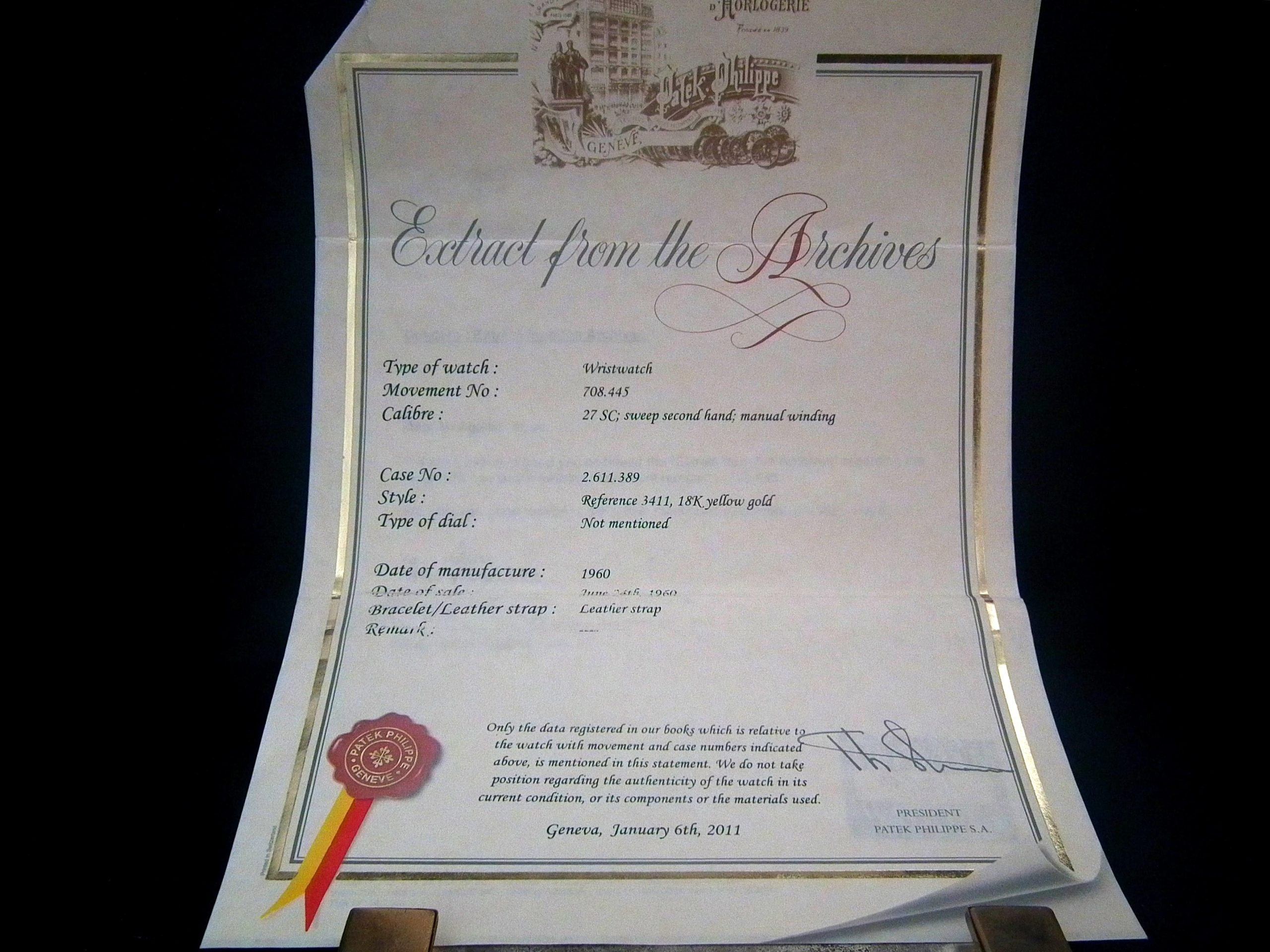 Provisional Listing – 1960 Solid 18ct Gold Oversize (34.8mm) Patek Philippe 3411 with Box and Extract of Archives