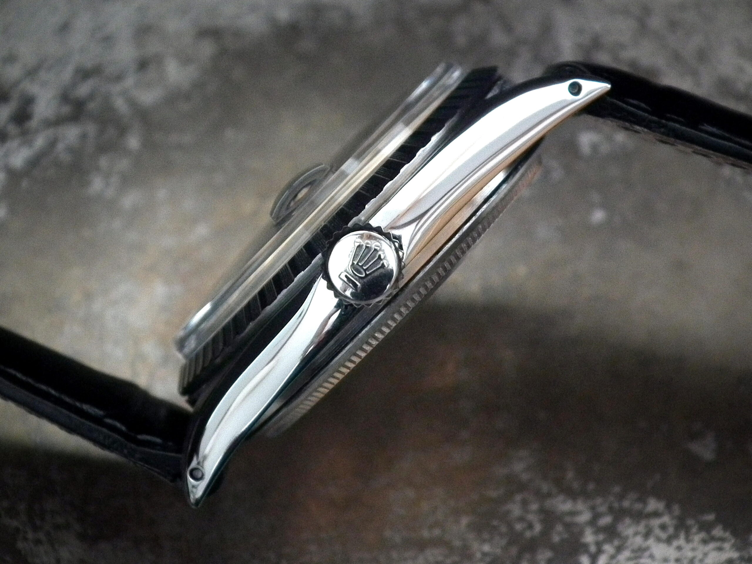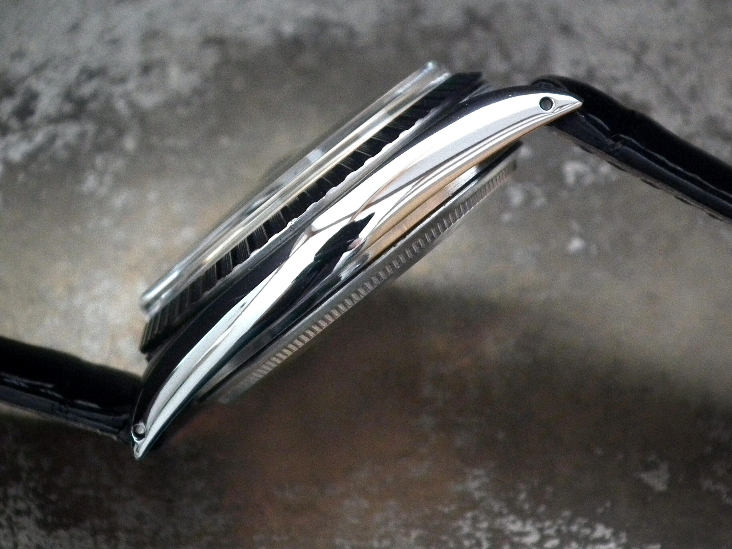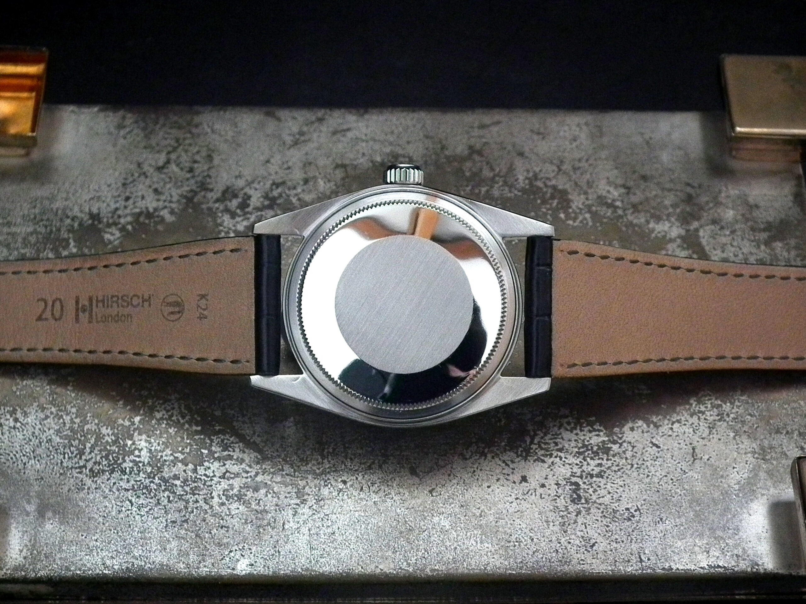This is a beautiful example of the iconic Rolex Datejust from 1967. The solid steel case is in excellent condition with only the most minimal signs of wear. The original Rolex signed steel pearlescent dial is again in excellent condition. The super high grade automatic chronometer standard movement is again in excellent condition and has just been serviced by our professional watchmaker. The watch sits on a new, super high quality, black Hirsch ‘London’ alligator with steel Hirsch buckle.