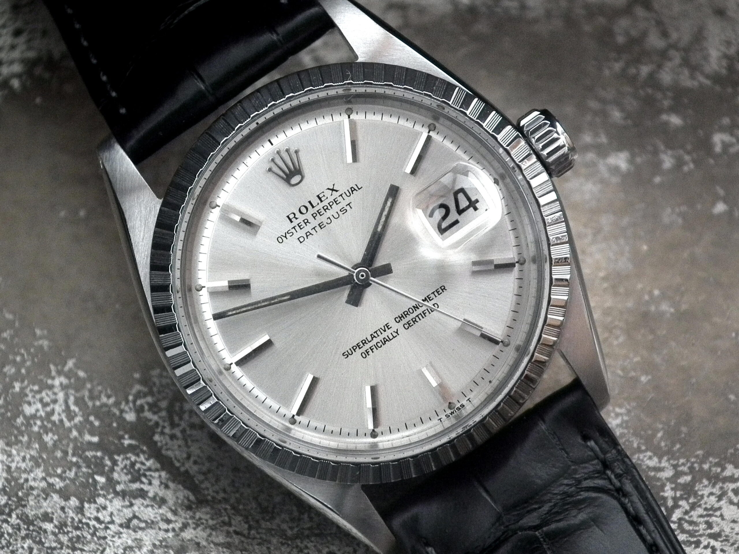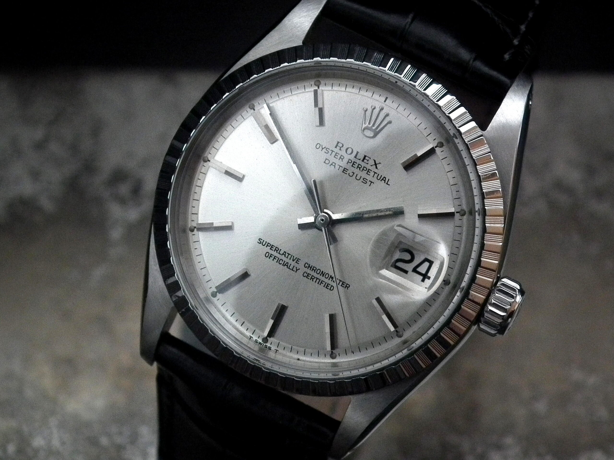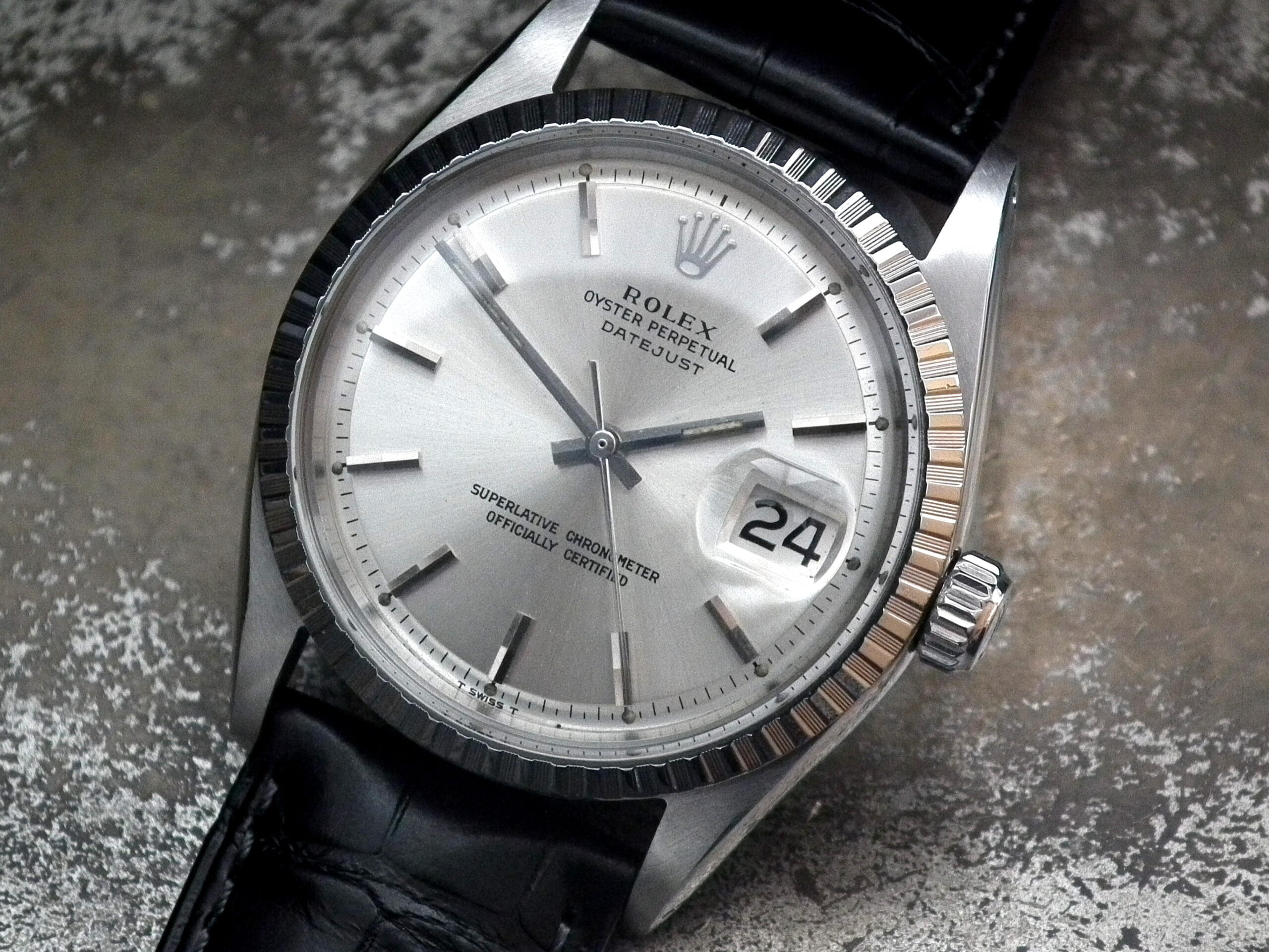 This is a beautiful example of the iconic Rolex Datejust from 1967. The solid steel case is in excellent condition with only the most minimal signs of wear. The original Rolex signed steel pearlescent dial is again in excellent condition. The super high grade automatic chronometer standard movement is again in excellent condition and has just been serviced by our professional watchmaker. The watch sits on a new, super high quality, black Hirsch ‘London’ alligator with steel Hirsch buckle.