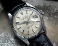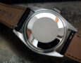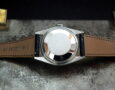 This is a wonderful example of an untouched Datejust from 1967. The steel and solid white gold (fluted bezel) case is in excellent condition with only minor signs of wear and corrosion around the back of the case where the case back sits. The original Rolex signed dial has aged beautifully to a tropical ivory/cream and looks stunning. The serial number is very difficult to read due to wear and corrosion but the case back confirms it’s a 1967. The very high grade chronometer standard Rolex signed automatic movement is in excellent condition and has just been fully serviced by our professional watchmaker. The watch sits on a new, super high quality, black Hirsch ‘London’ alligator strap with a steel Hirsch buckle.