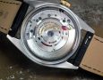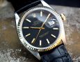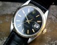 This is a beautiful example of the iconic Rolex Datejust from 1968. The steel and solid gold (fluted bezel) case is in near flawless condition with only the most minor signs of wear. The original jet black Rolex signed dial is in very good condition (please disregard the small spec around the ‘9’ baton, the joys of photographing black dial watches; just a spec of dust). The super high grade chronometer standard Rolex automatic movement is again in very good condition and has just been fully serviced by our professional watchmaker. The watch sits on a new, super high quality, black Hirsch ‘London’ alligator strap with gold plated Hirsch buckle.