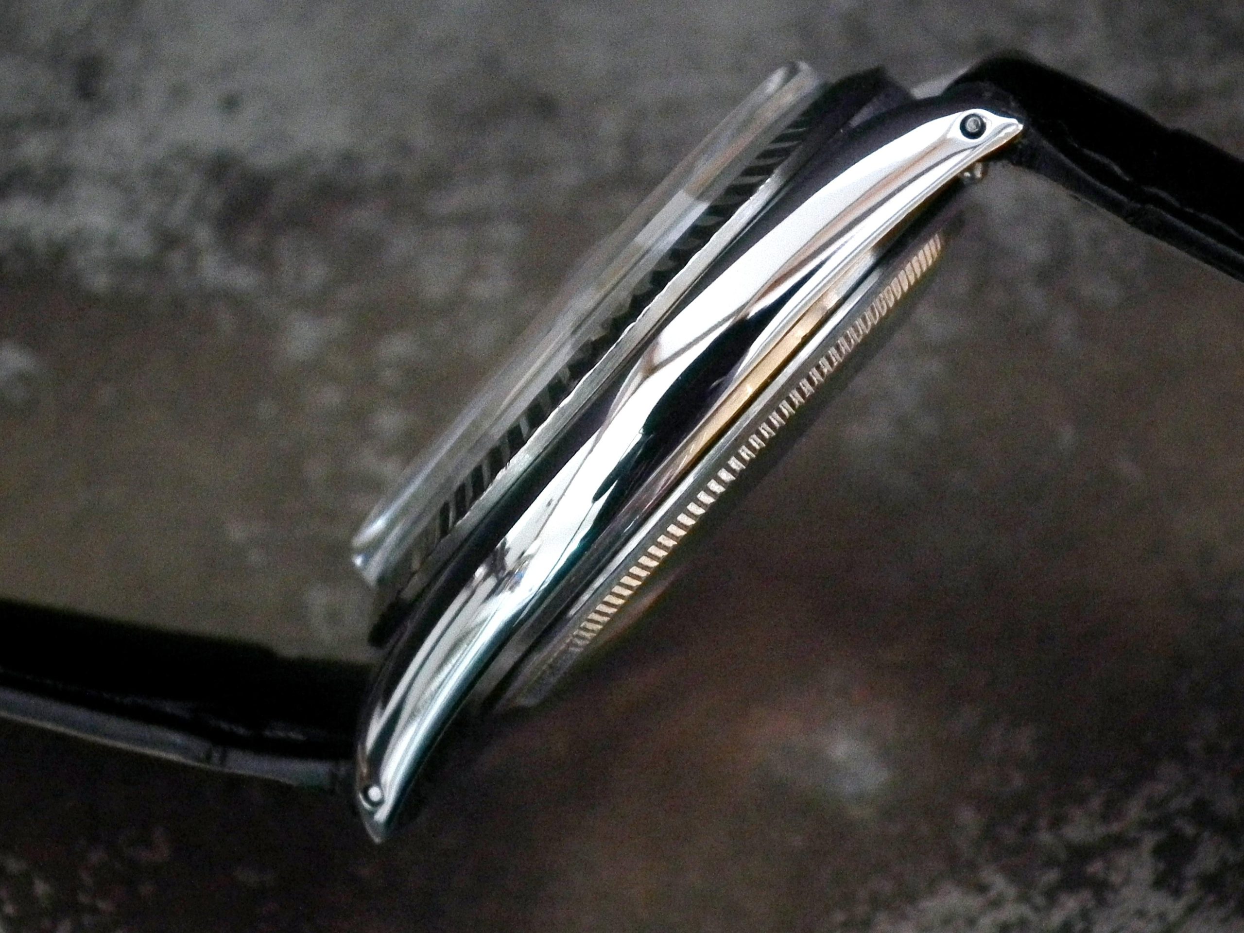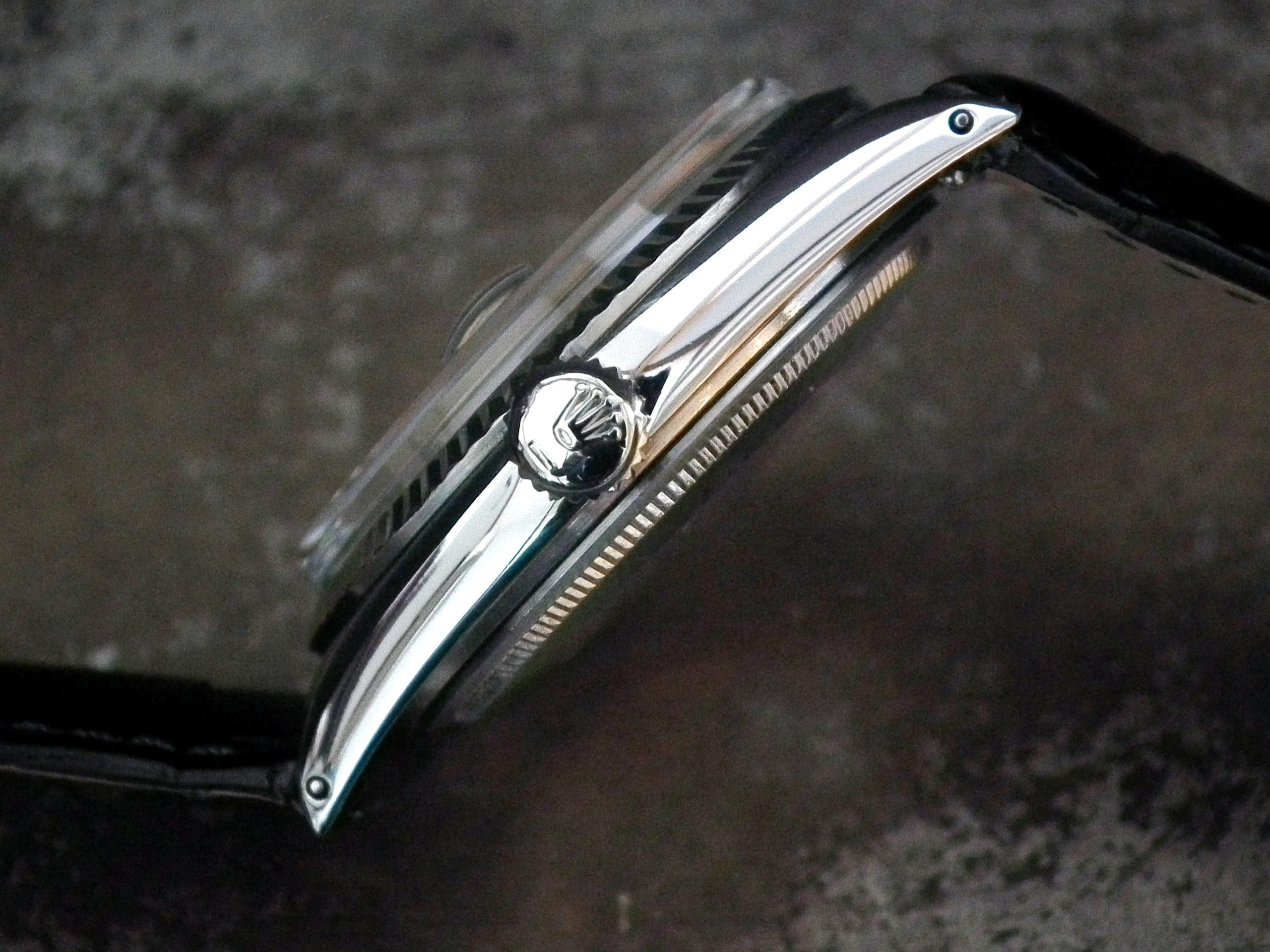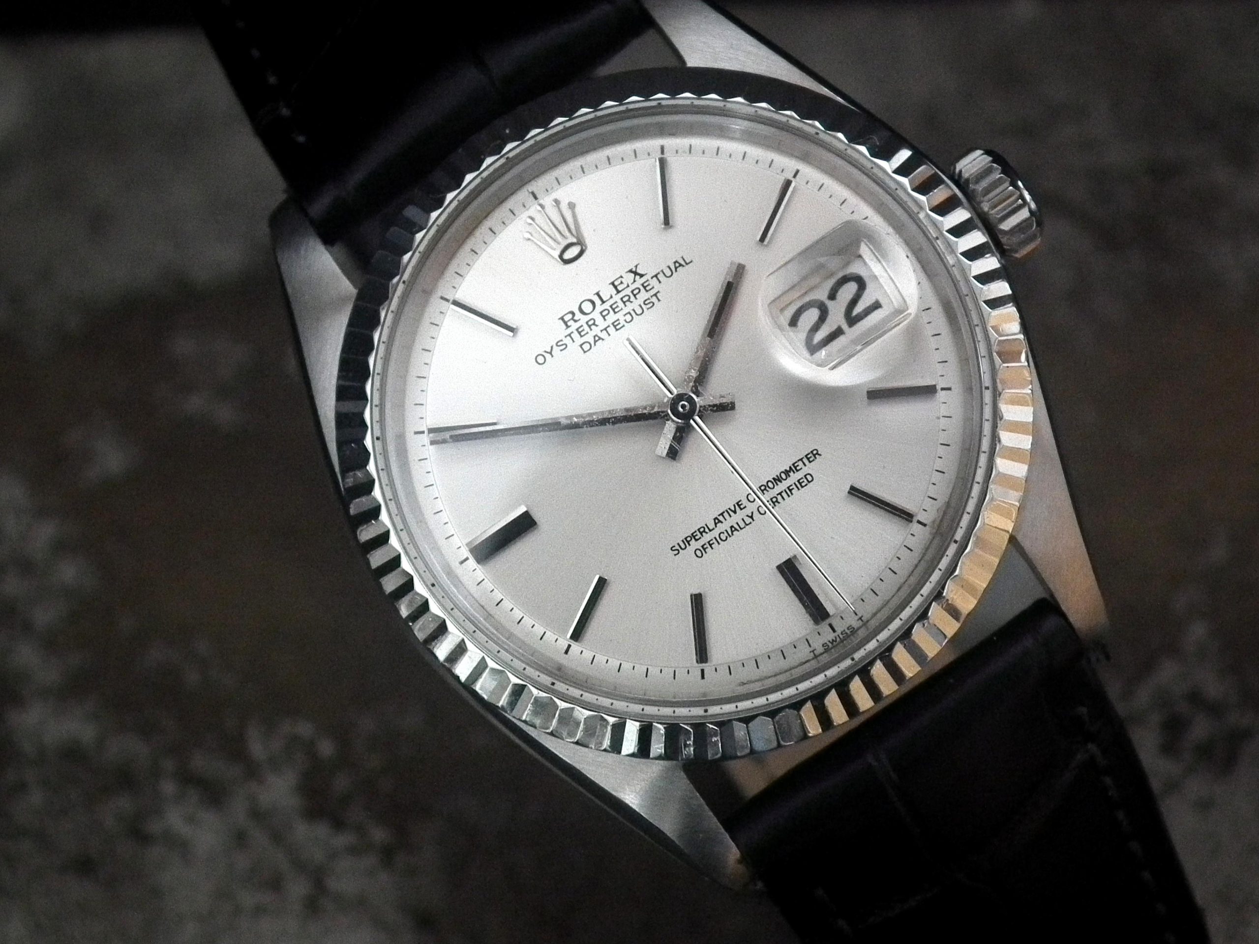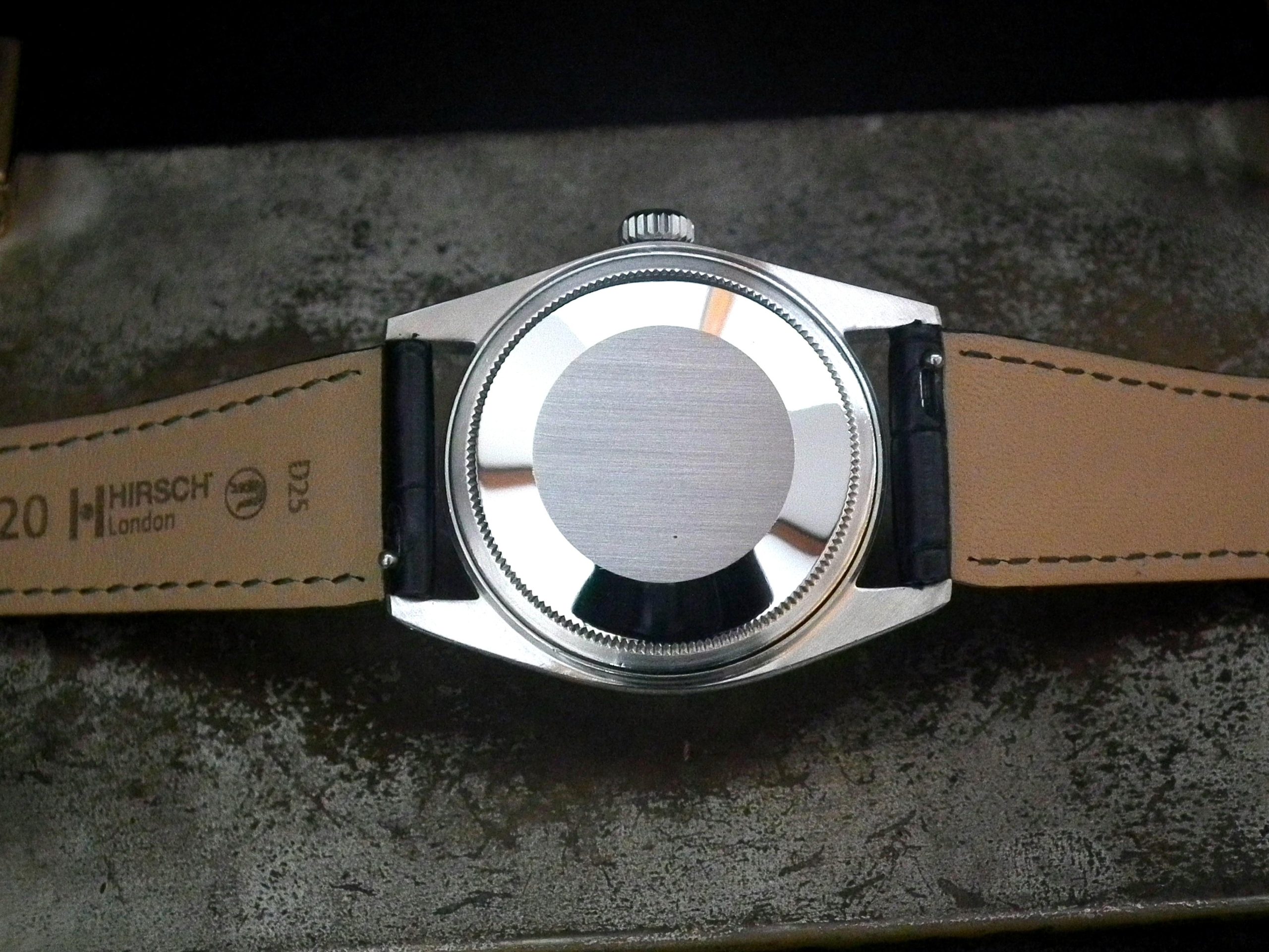 This is a beautiful example of the iconic Rolex Datejust from 1970. The steel and solid gold (fluted bezel) case is in near faultless condition with only the most minor signs of wear. The original Rolex signed steel pearlescent dial is again in excellent condition with only some very minor paint missing at the very edge between the ‘5’ and ‘7’ batons (very hard to see with the naked eye). The very high grade chronometer standard Rolex signed automatic movement is again in excellent condition and has just been fully serviced by our professional watchmaker. The watch sits on a new, super high quality, black Hirsch ‘London’ alligator strap with a steel Hirsch buckle.