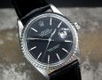 This is a beautiful example of the iconic Rolex Datejust from 1971. The solid steel case is in near faultless condition with only the most minor signs of wear. The original Rolex signed black dial is again in excellent condition. The very high grade chronometer standard Rolex signed automatic movement is again in excellent condition and has just been fully serviced by our professional watchmaker. The watch sits on a new, super high quality, black Hirsch ‘London’ alligator strap with a steel Hirsch buckle.