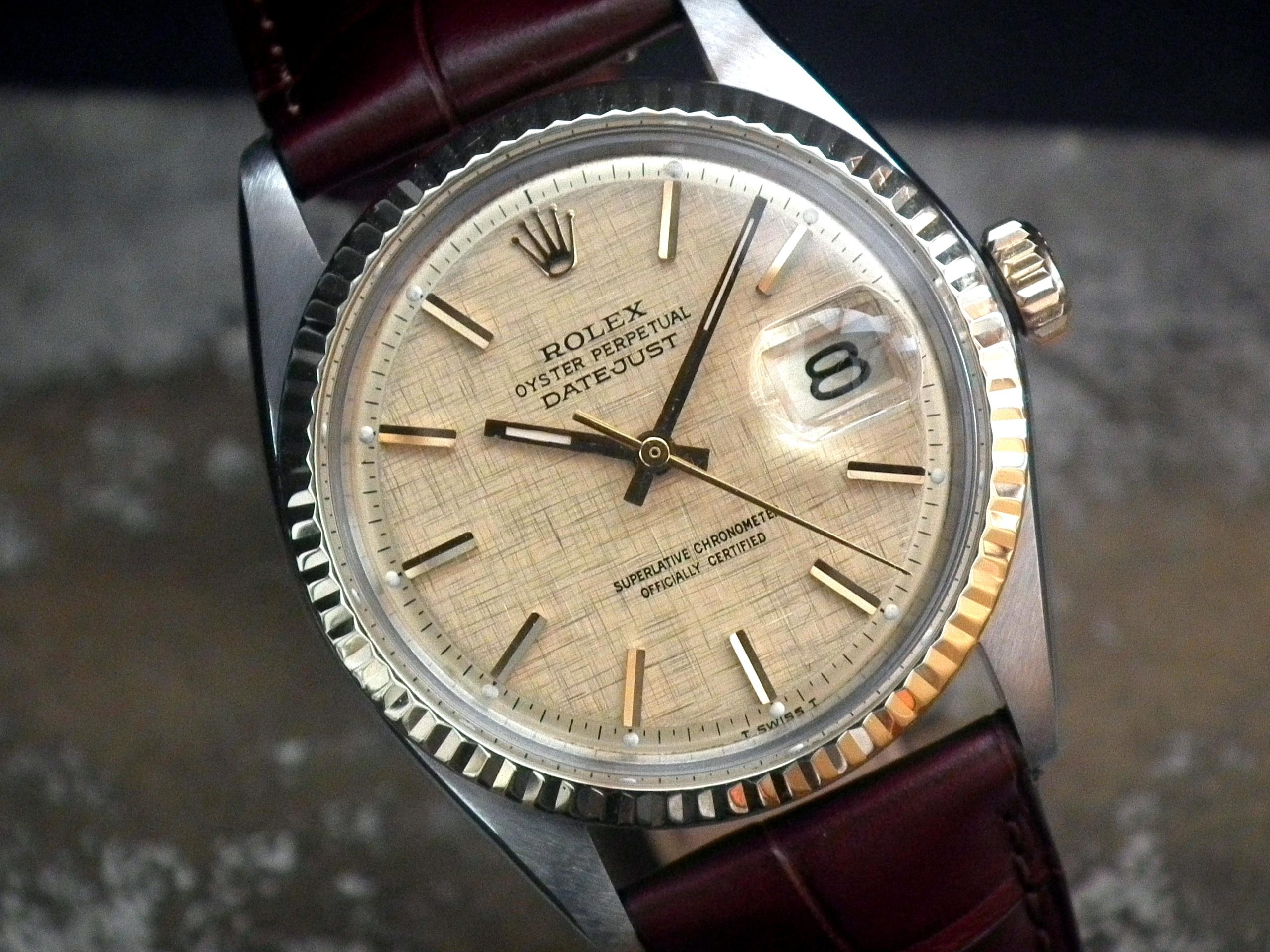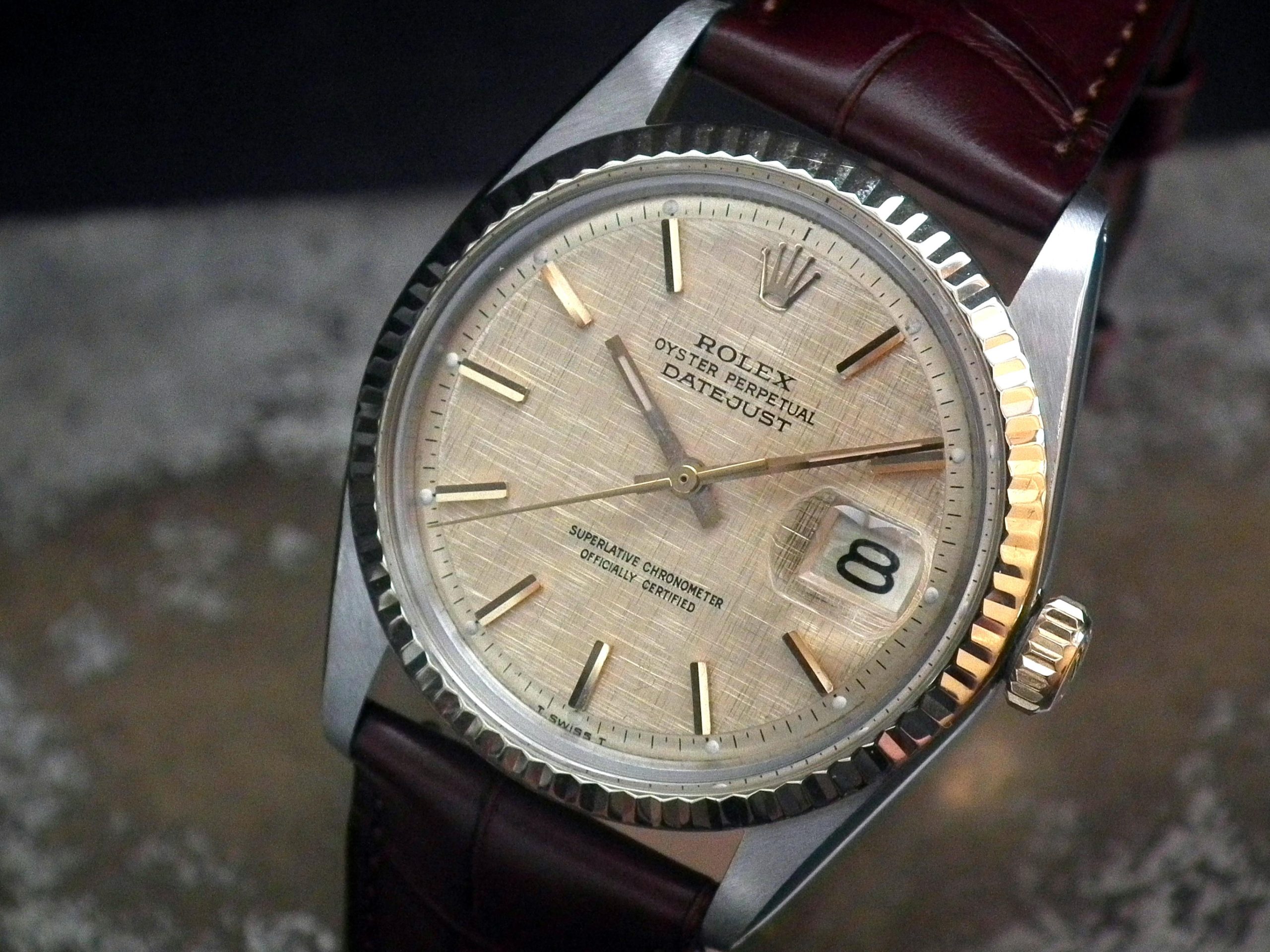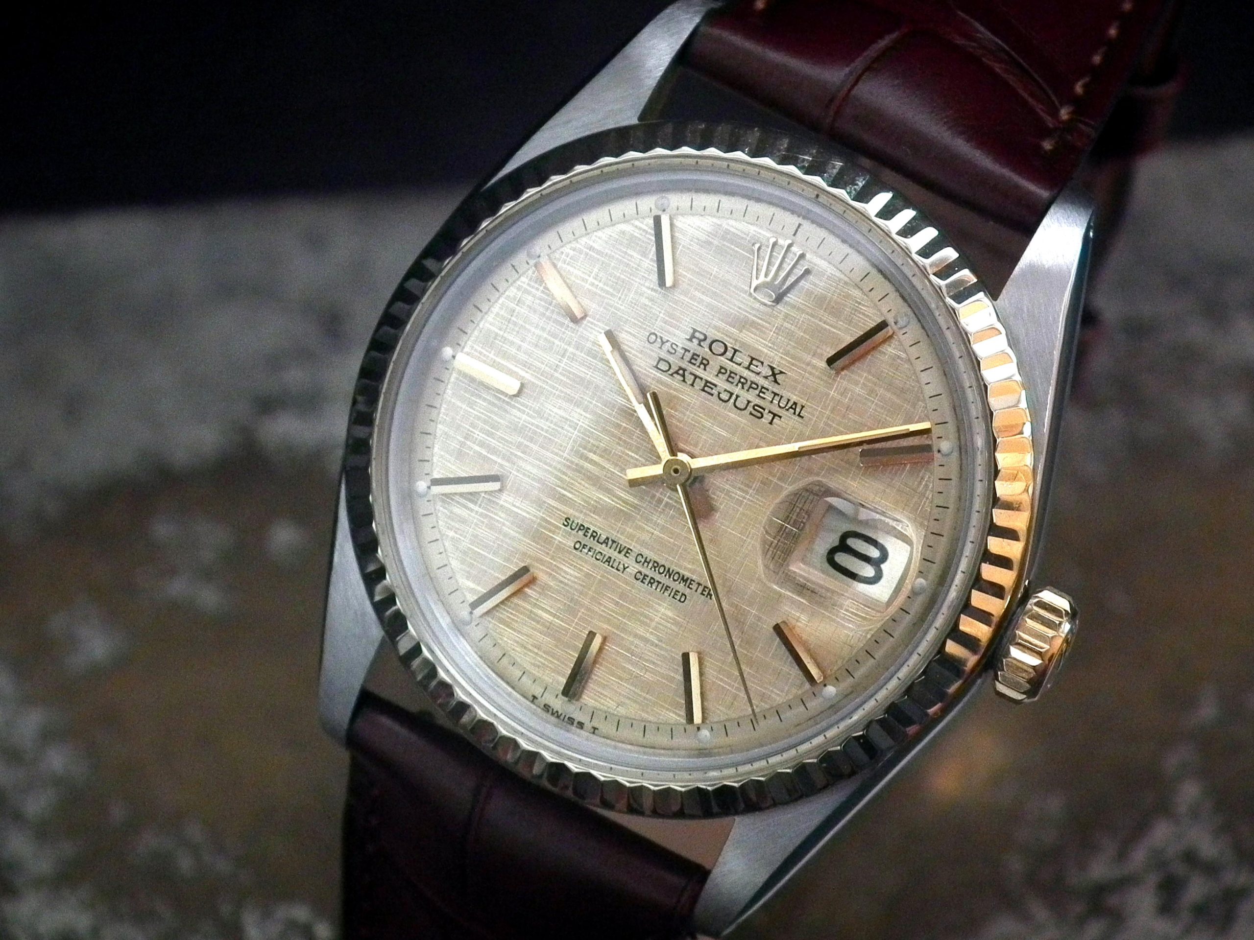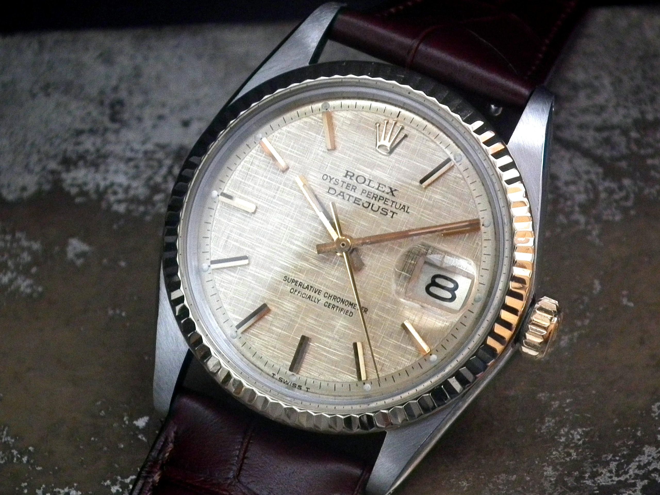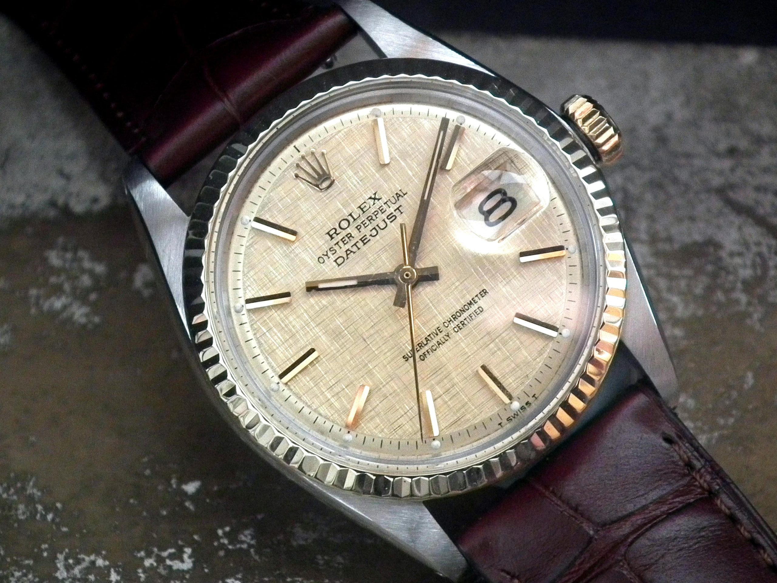 Just Beautiful 1974 Steel and Solid Gold Rolex Linen Dial Datejust Gents Vintage Watch