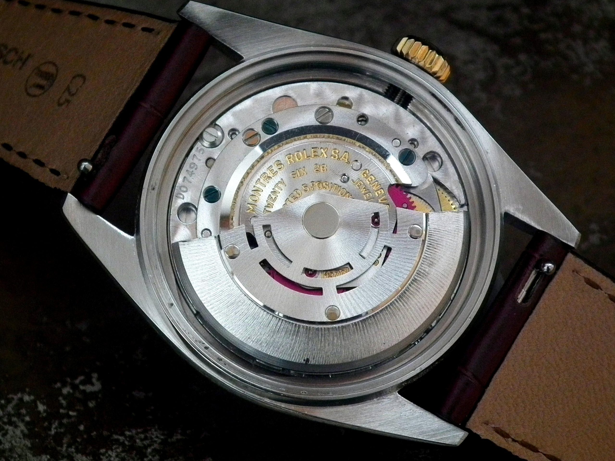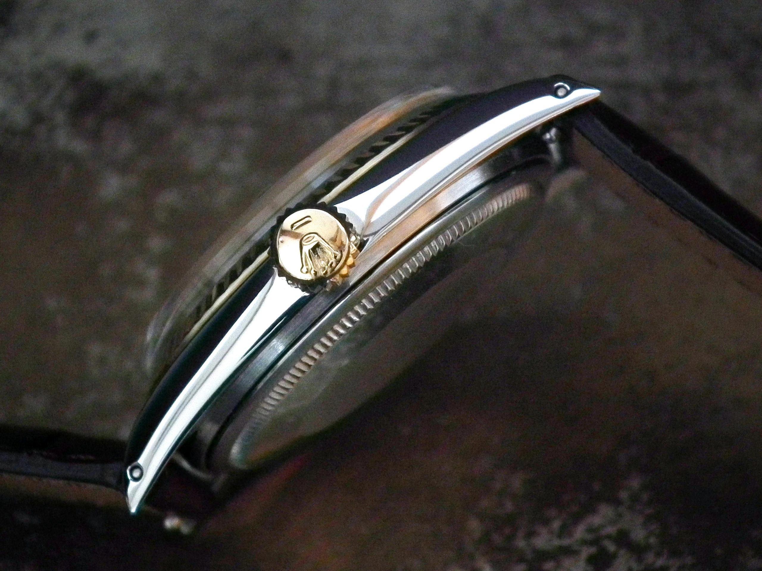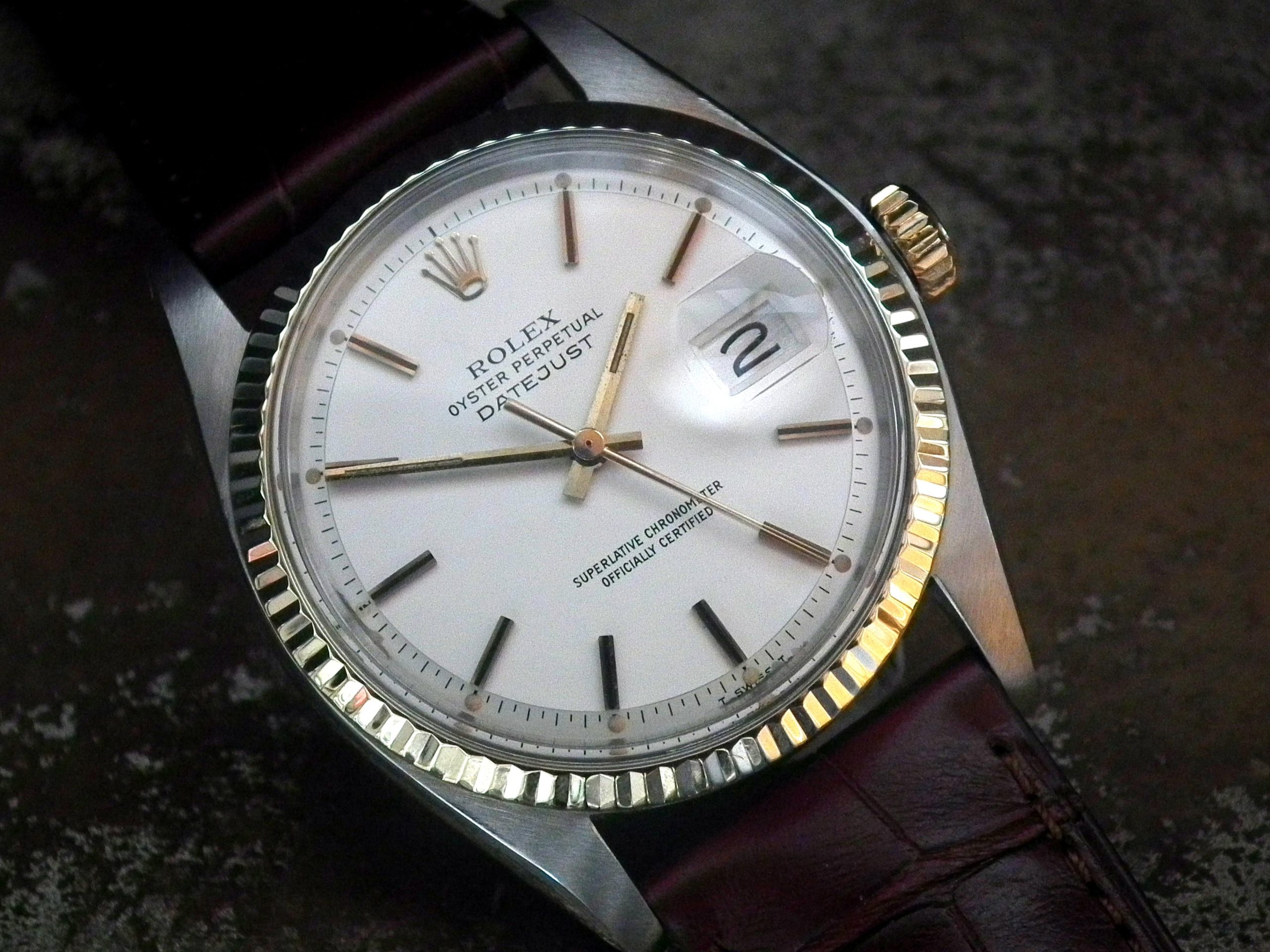 This is a beautiful example of the iconic Rolex Datejust from 1978. The steel and solid gold (fluted bezel) case is in near faultless condition with only the most minor signs of wear. The original Rolex signed slightly off-white dial is again in excellent condition. The very high grade chronometer standard Rolex signed automatic movement is again in excellent condition and has just been fully serviced by our professional watchmaker. The watch sits on a new, super high quality, dark brown Hirsch ‘London’ alligator strap with a gold plated Hirsch buckle.