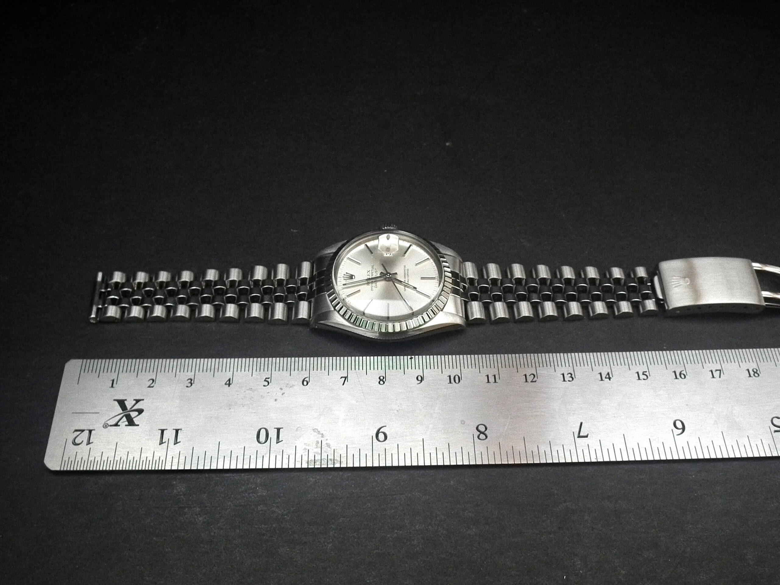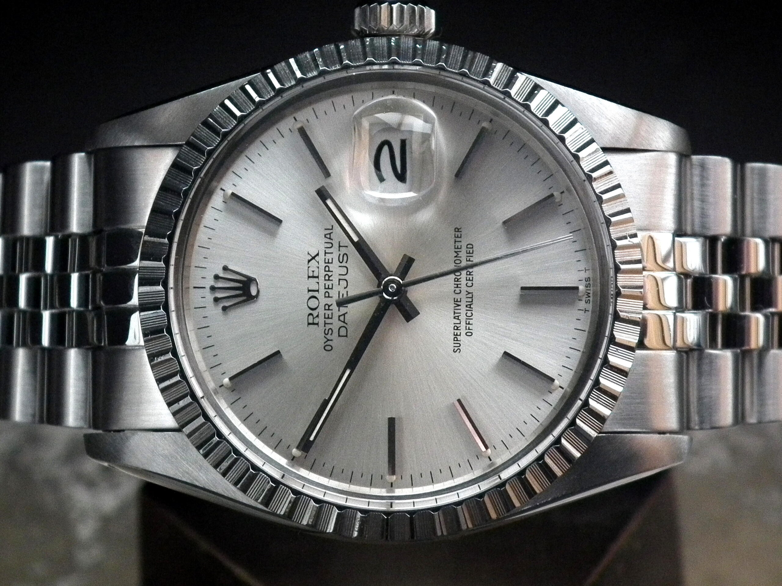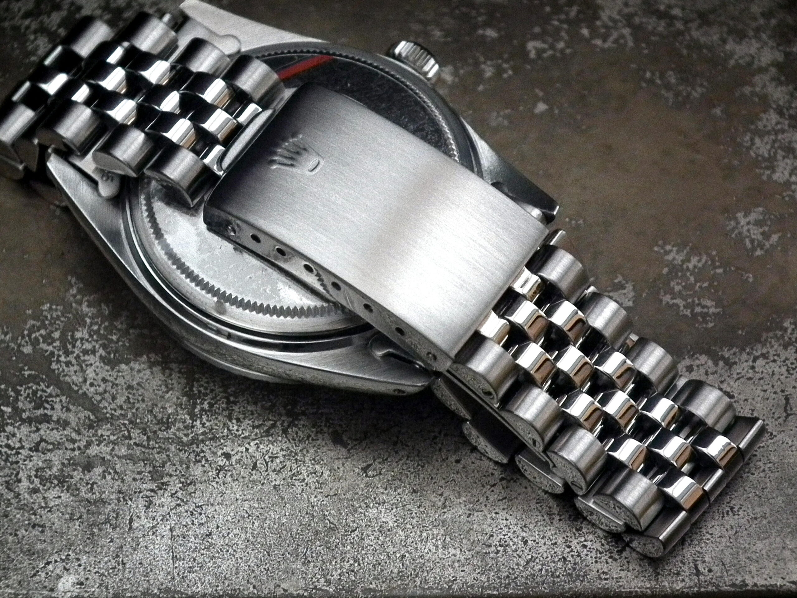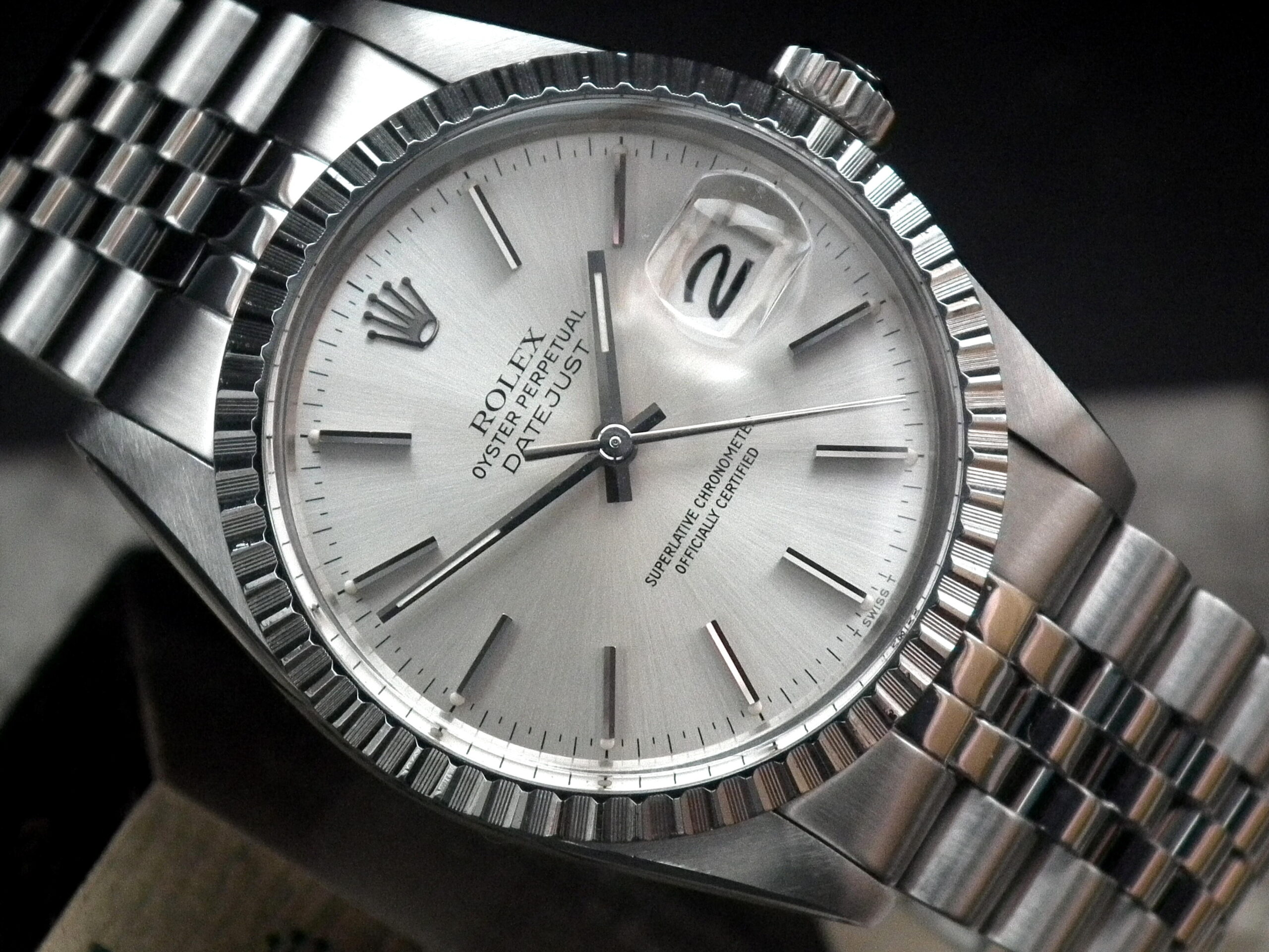 This is a beautiful example of the iconic Rolex Datejust from 1983 – it’s also the quick date set model. The solid steel case is in excellent condition with only the most minimal signs of wear. The original Rolex signed steel pearlescent dial is again in excellent condition. The super high grade Rolex signed chronometer standard automatic movement is again in excellent condition and has just been fully serviced by our professional watchmaker. The watch sits on what we believe is the original genuine Rolex Jubilee bracelet with the age reference of ‘E’. It’s in excellent aesthetic condition but does have some relatively minor sag/stretch. It will fit an 18.5cm wrist and we can supply extra links if required at £75 each. Very rarely we also have excellent provenance: