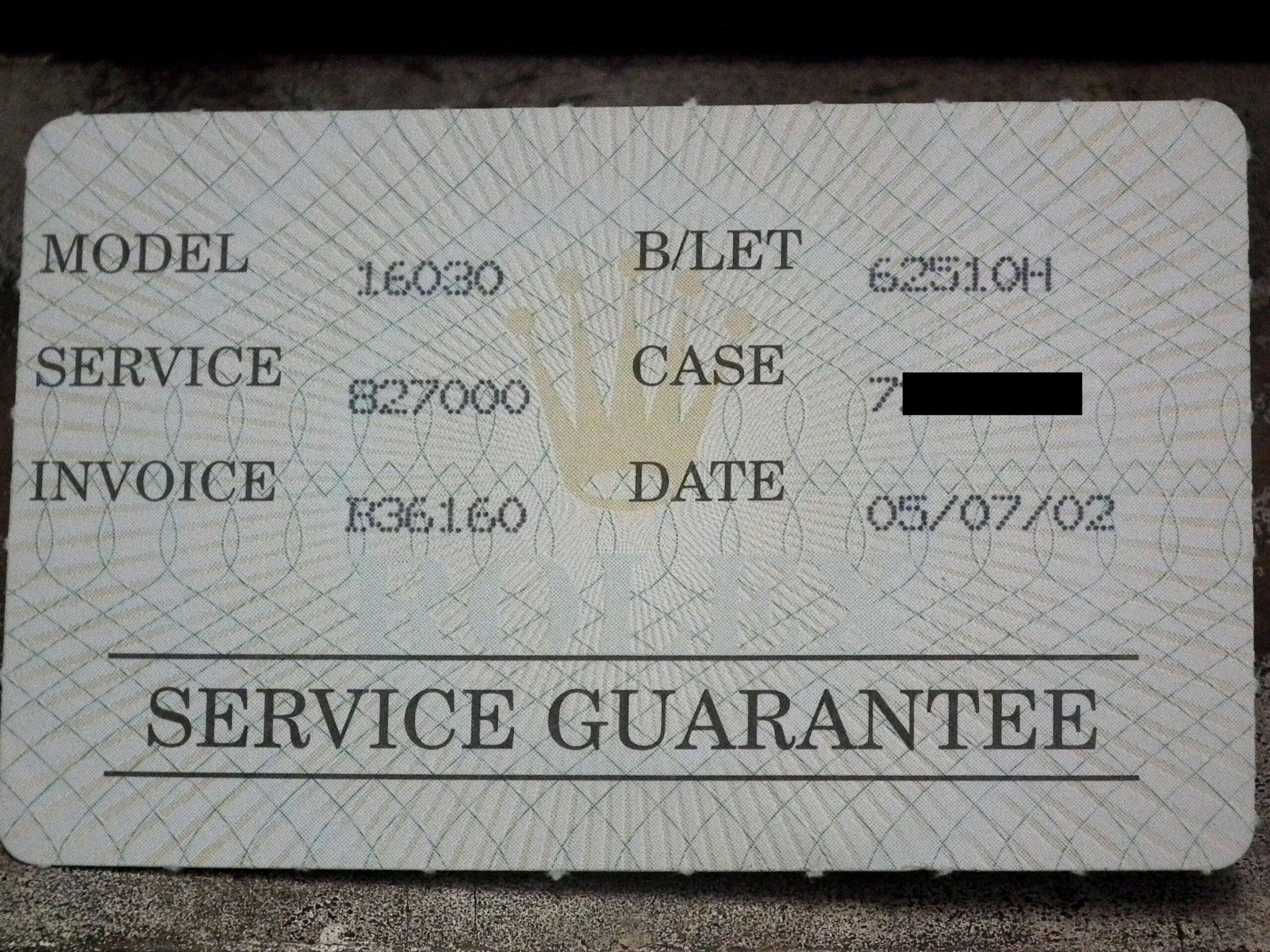 - A Rolex service with matching serial number from 2002