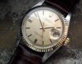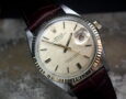 This is a wonderful example of the iconic Rolex Datejust from 1969. It has the very rare and very beautiful original champagne linen dial which is in excellent condition. The steel and solid gold case is again in excellent condition with only the most minor signs of wear. The original and chronometer standard Rolex automatic mover movement is again in excellent condition and has just been fully serviced by our professional watchmaker. The watch sits on a new, super high quality, dark brown Hirsch ‘London’ alligator strap with a Hirsch gold plated buckle.