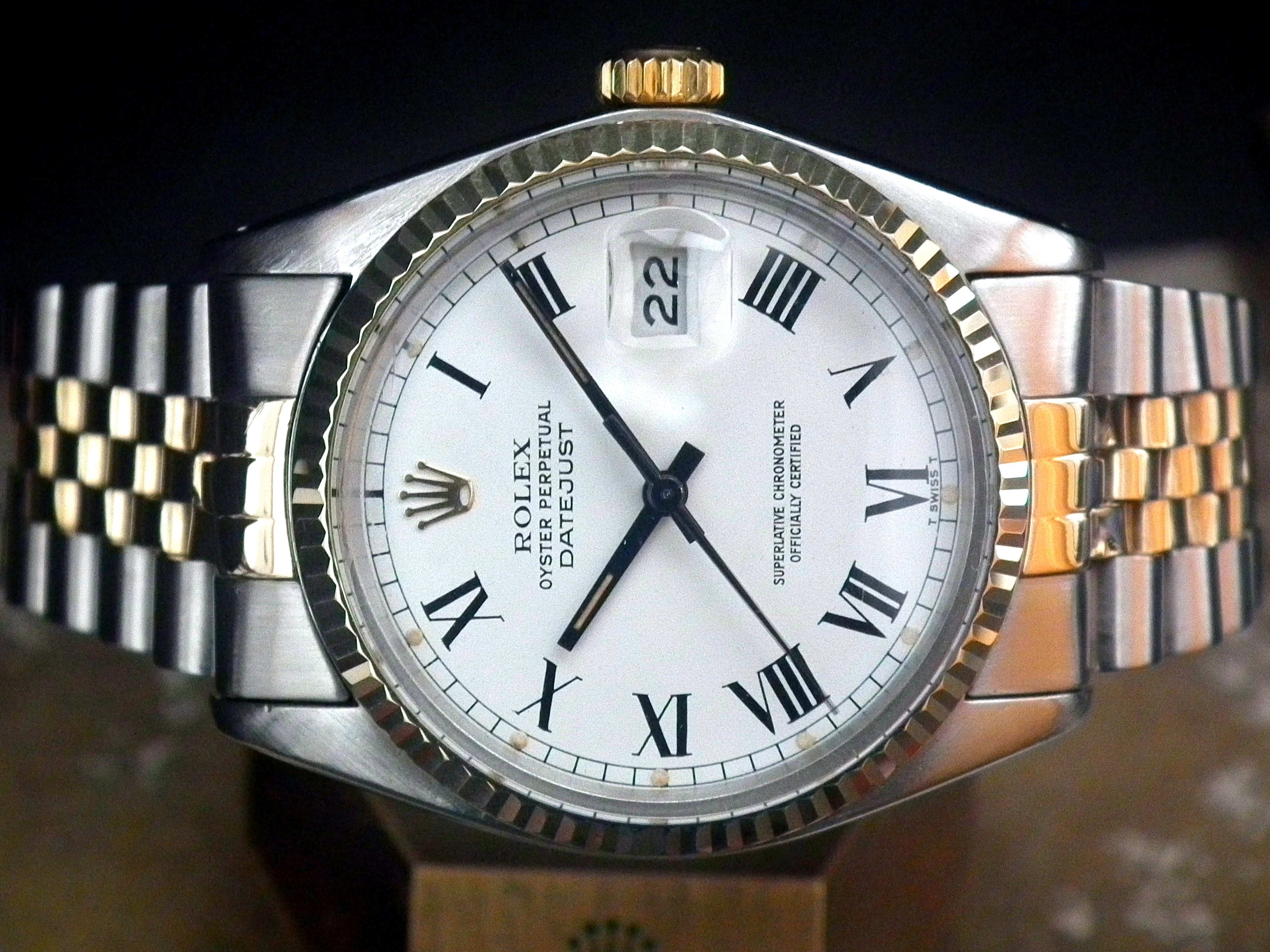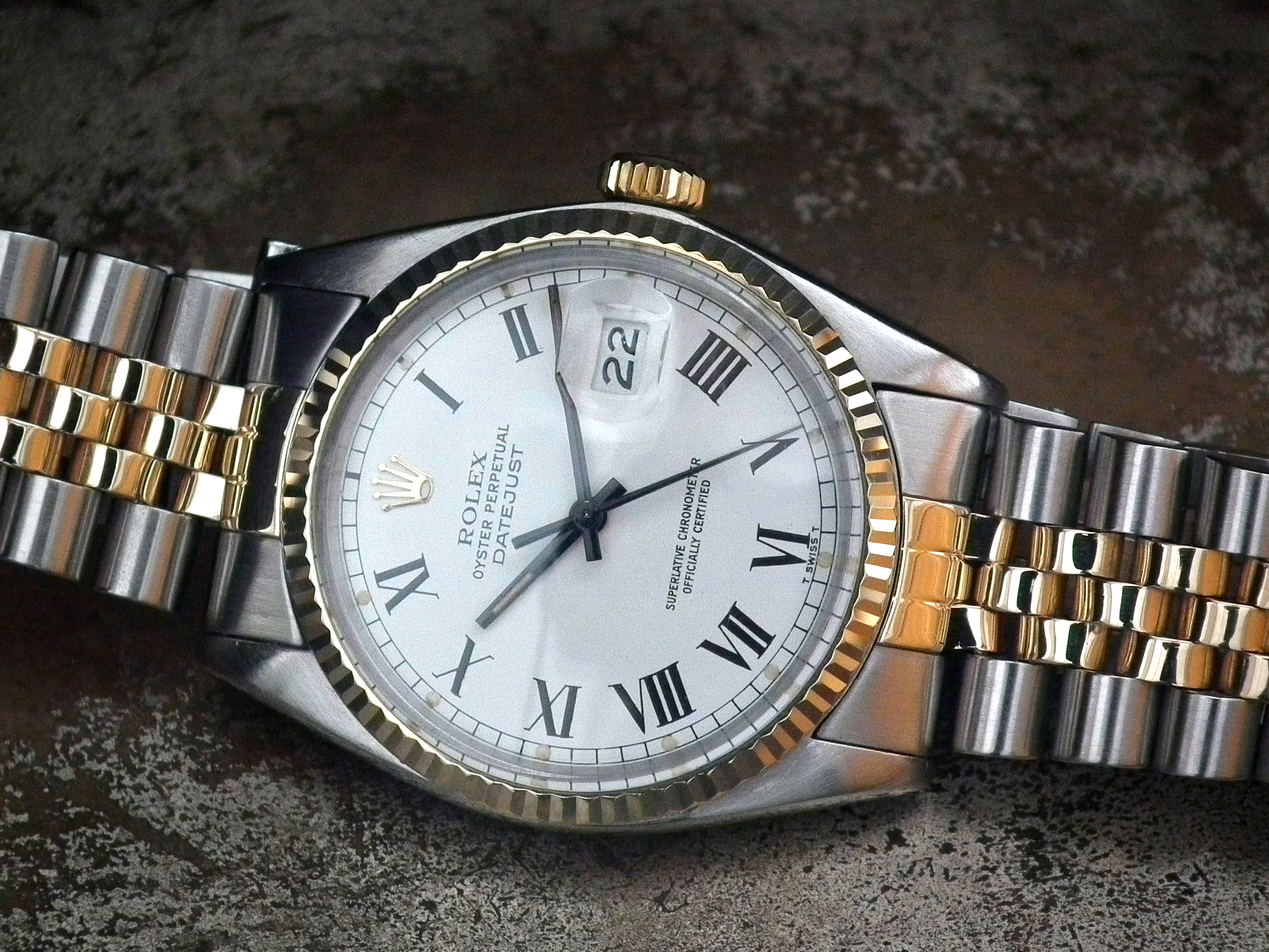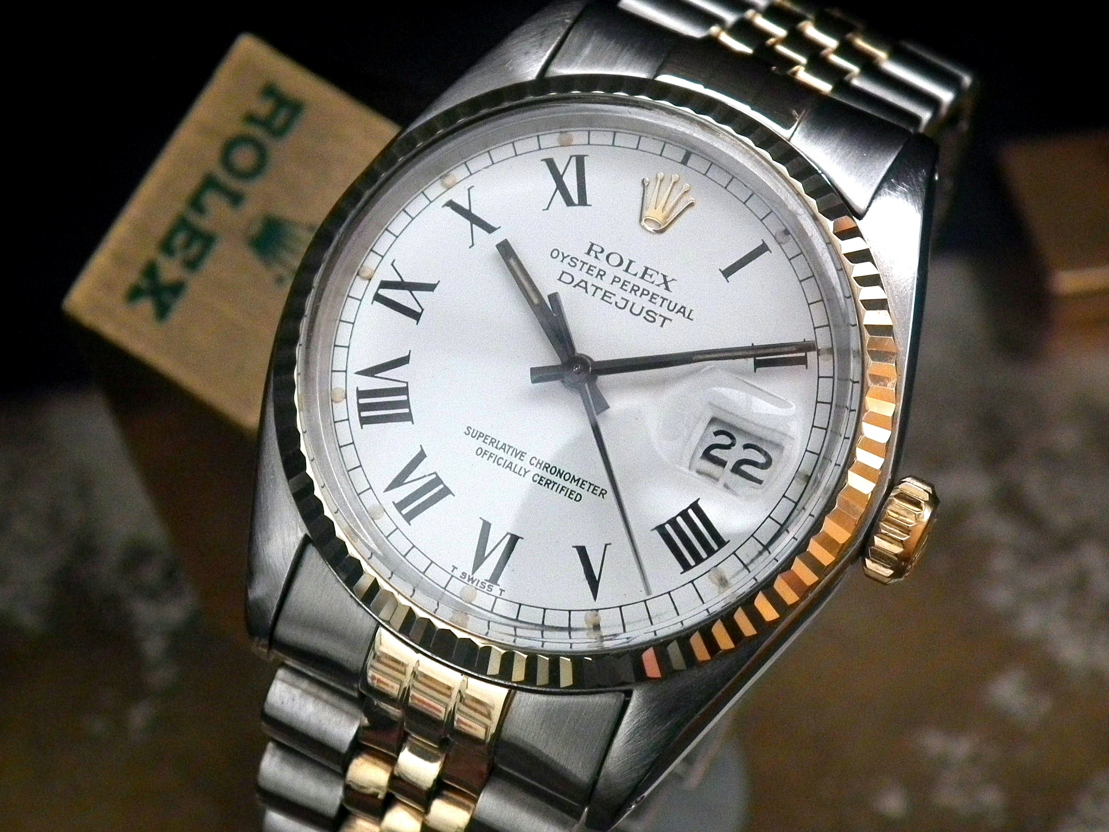 This watch is currently being serviced and softly polished and will be available in early October. It’s a stunning example of the very rare Buckley Dial Datejust with the original bracelet (very tight) and Punched Papers