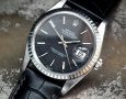 This is a beautiful example of the iconic Rolex Datejust from 1975 – very rarely it has a matte black dial (these were special order and are few and far between). The solid steel case is in near faultless condition with only the most minor signs of wear. The original black matte dial is in very good condition but does have signs of wear – these are hard to see with the naked eye. The super high quality chronometer standard Rolex signed movement is in excellent condition and has just been fully serviced by our professional watchmaker. The watch sits on a new, super high quality, black Hirsch ‘London’ alligator strap with a steel Hirsch buckle.
