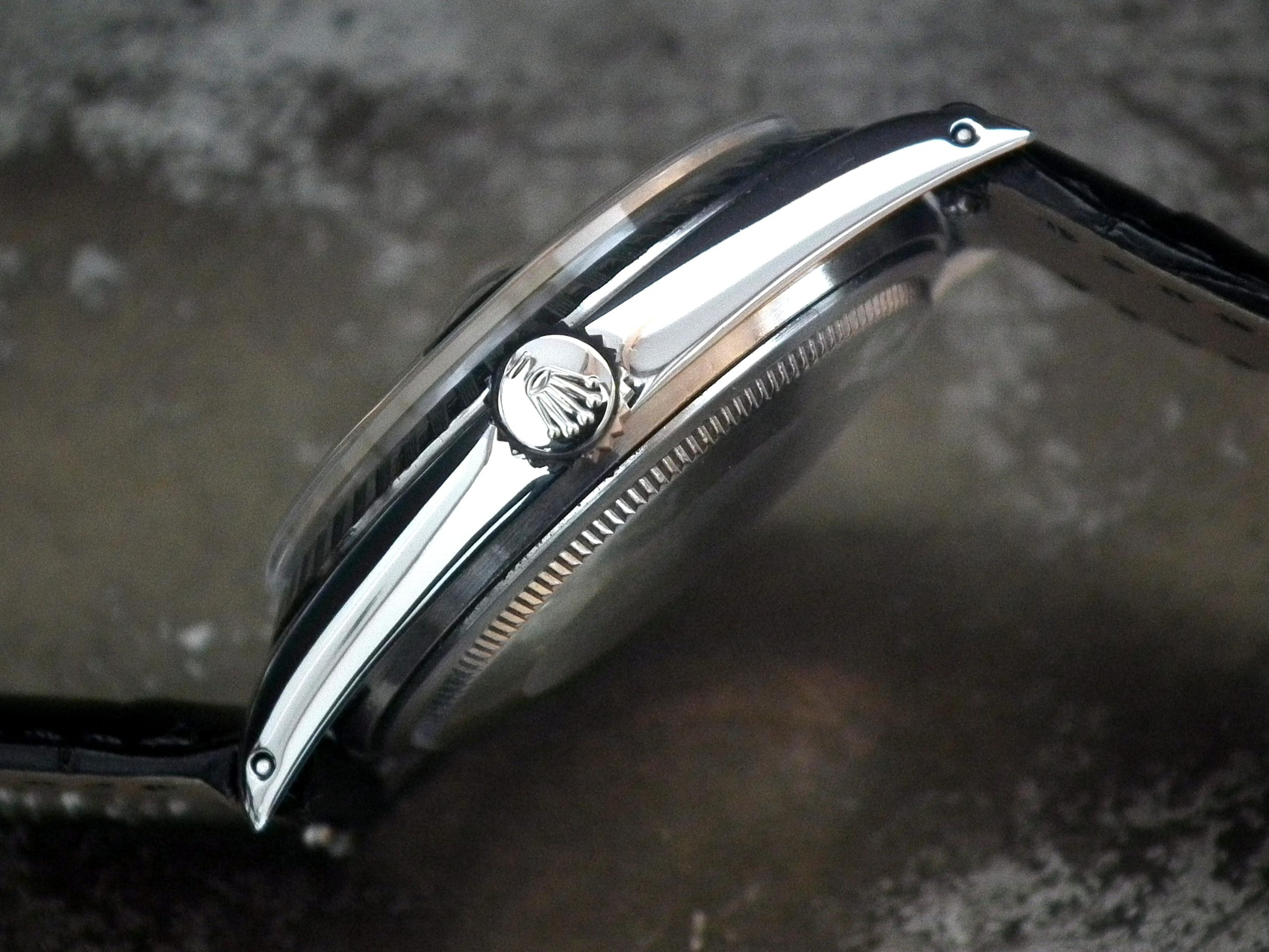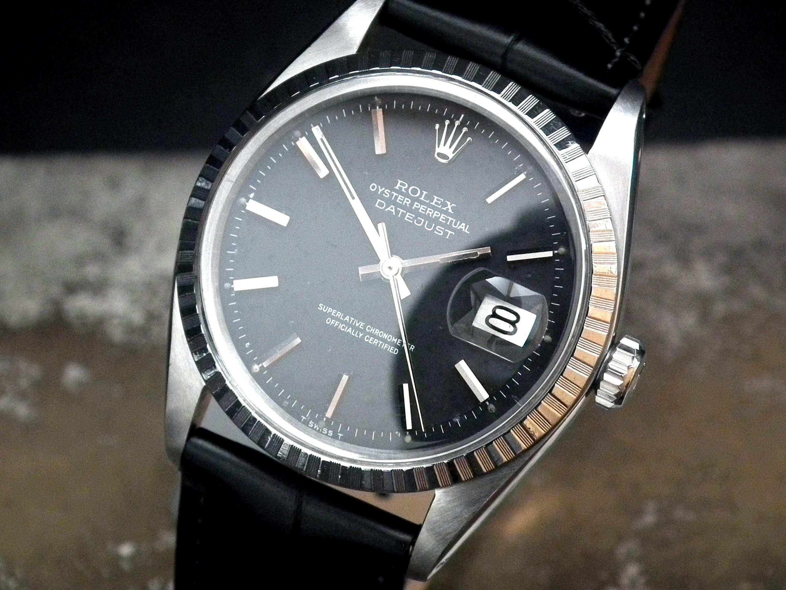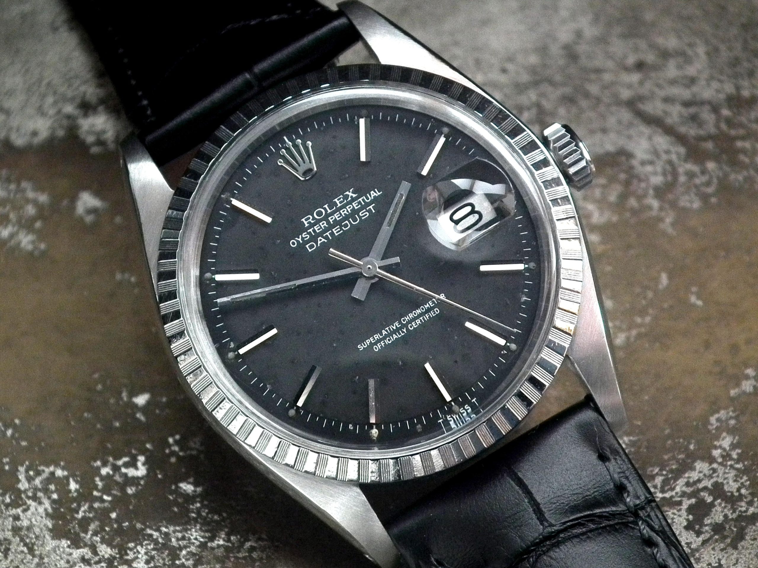 This is a beautiful example of the iconic Rolex Datejust from 1975 – very rarely it has a matte black dial (these were special order and are few and far between). The solid steel case is in near faultless condition with only the most minor signs of wear. The original black matte dial is in very good condition but does have signs of wear – these are hard to see with the naked eye. The super high quality chronometer standard Rolex signed movement is in excellent condition and has just been fully serviced by our professional watchmaker. The watch sits on a new, super high quality, black Hirsch ‘London’ alligator strap with a steel Hirsch buckle.