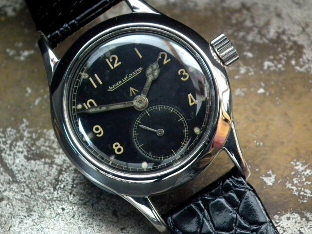 The British military commissioned 12 watchmakers to create a robust, shock proof, waterproof and chronometer standard wristwatch for the armed forces. They had to have a black dial, broad hands and be between 32 and 38mm across. They also insisted they had a minimum of 15 jewels in the movement. Only a few manufacturers, IWC, Jaeger and Omega, kept accurate records of the numbers. Jaeger delivered only 10,000 – the 6th lowest. As an aside, they didn’t have a collective name until the 1960’s film, The Dirty Dozen, was released.