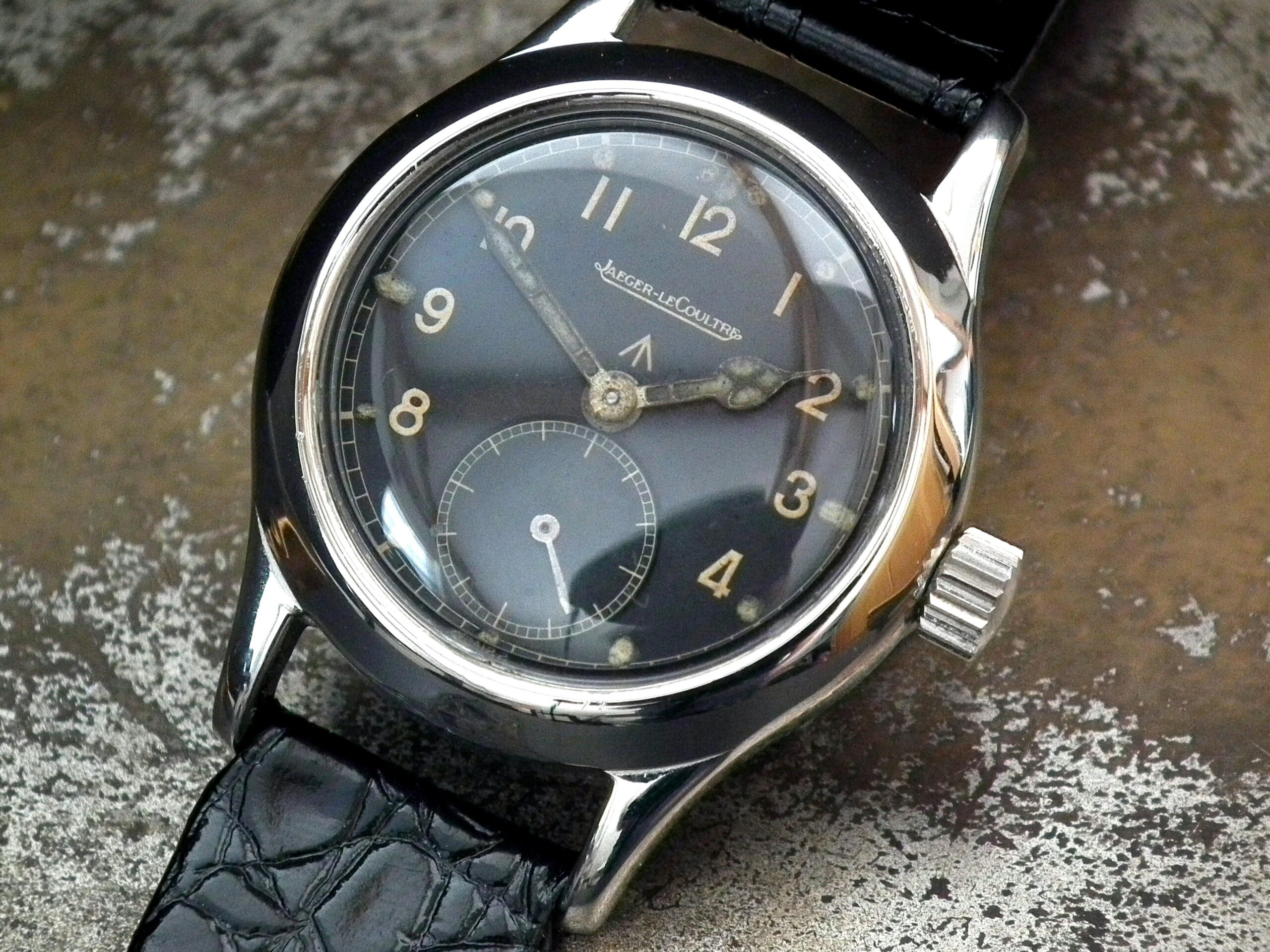 The British military commissioned 12 watchmakers to create a robust, shock proof, waterproof and chronometer standard wristwatch for the armed forces. They had to have a black dial, broad hands and be between 32 and 38mm across. They also insisted they had a minimum of 15 jewels in the movement. Only a few manufacturers, IWC, Jaeger and Omega, kept accurate records of the numbers. Jaeger delivered only 10,000 – the 6th lowest. As an aside, they didn’t have a collective name until the 1960’s film, The Dirty Dozen, was released.