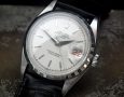This is a wonderful example of one of the earliest Rolex Datejusts (introduced in 1945). The solid steel case is in excellent condition with only the most minor signs of wear. The original Rolex signed crisp white dial has been professionally refinished or cleaned a few years ago and is stunning. The raised steel hour batons and original steel dagger hands provide a soft contrast to the dial and are perfectly framed by the early engine turned steel bezel. Being a Roulette date the colours alternate between black and red. The very rare Rolex signed 1065 ‘Butterfly’ automatic movement is again in excellent condition and has just been fully serviced by our professional watchmaker – please note, whilst in excellent condition it will need winding once or twice a week even with regular wear.