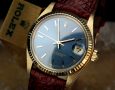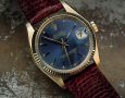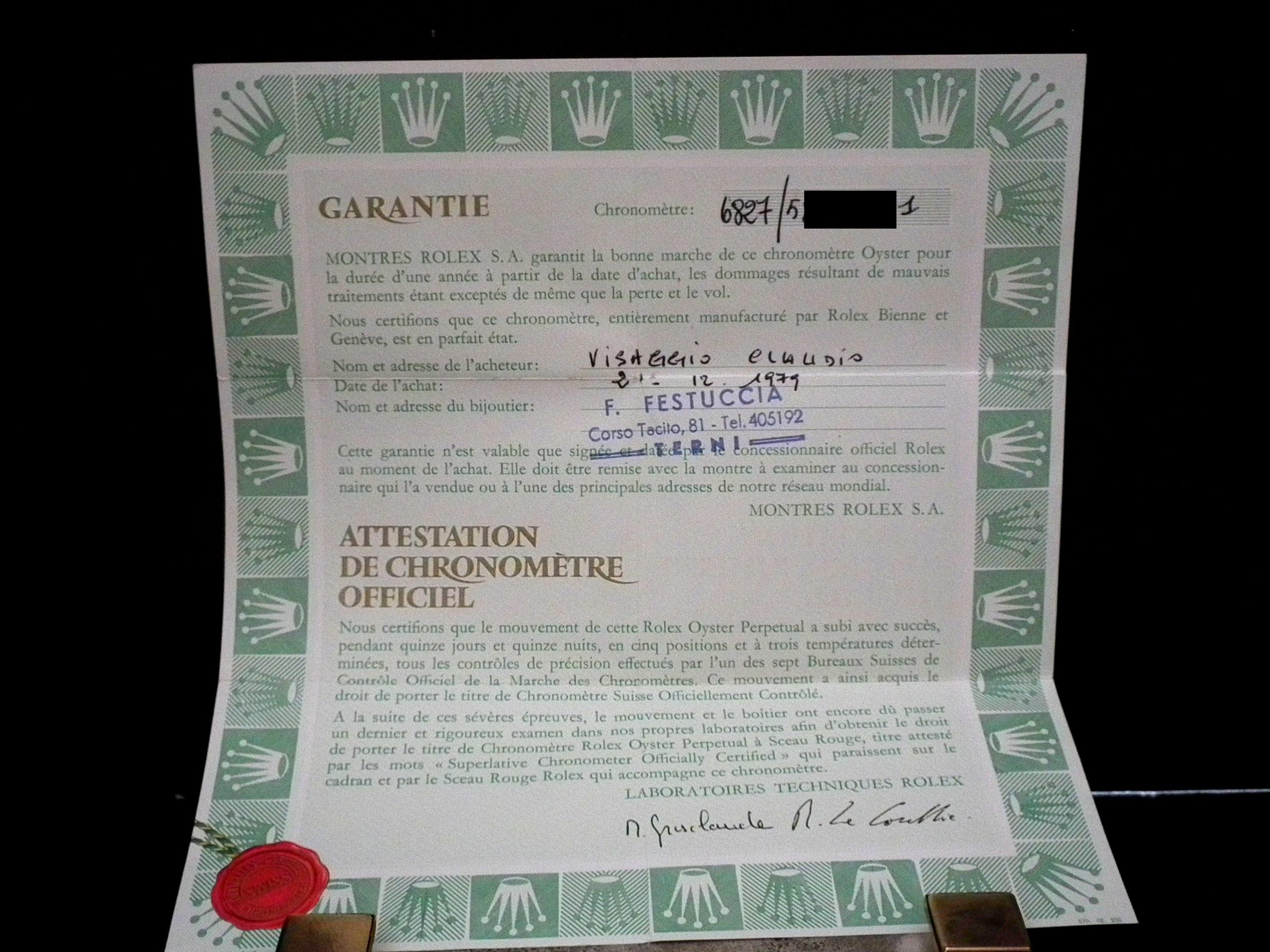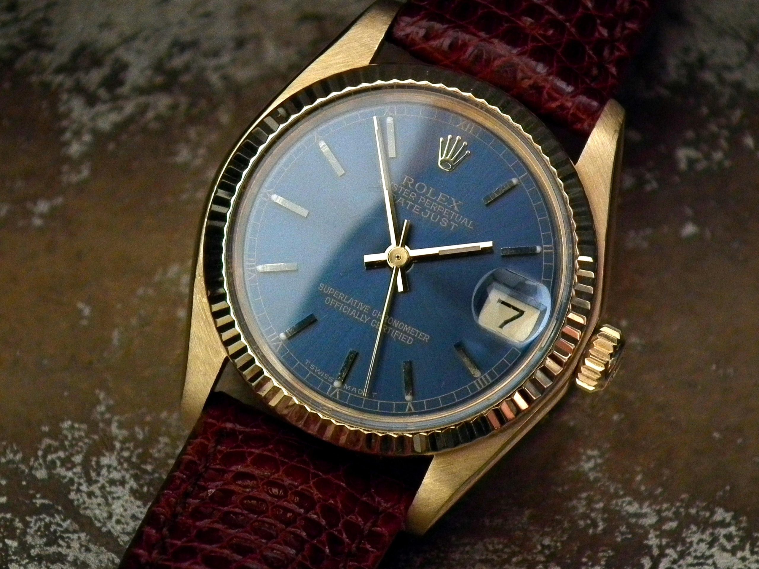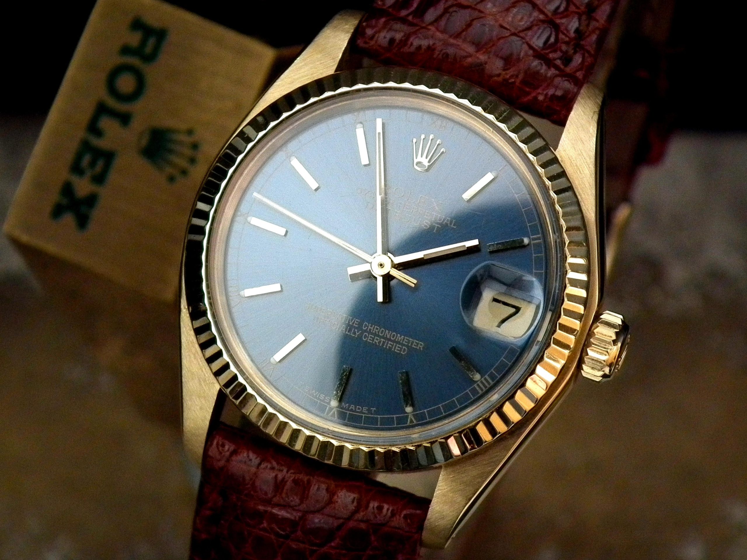 This is a stunning example of the iconic mid-size Rolex Datejust from 1979. The solid 18ct yellow gold is in overall excellent condition with some minor surface scratches. The original and beautiful dark blue pearlescent Rolex dial is again in excellent condition – the yellow gold hands and fluted bezel provide a lovely contrast. The very high grade Rolex signed chronometer standard automatic movement is again in excellent condition and was fully serviced by the Rolex approved watchmaker Stephen Hale so has their 2 year guarantee to 31/1/27 – we’ll provide a balance for the full year. The watch sits on a brown lizard skin strap which is in very good condition – very rarely it also has a genuine solid 18ct yellow gold Rolex buckle (£650 or so)… In terms of provenance we have: