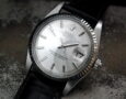 This is a beautiful example of the iconic Rolex Datejust from 1974. The solid steel and solid white gold (fluted bezel) case is in excellent condition with only the most minor signs of wear. The original Rolex signed steel pearlescent dial is untouched and again in excellent condition. It’s also the sigma dial (denoted by the ‘O’ under the ‘6’ baton) meaning the applied batons and hands are solid white gold so won’t tarnish. The very high grade chronometer standard automatic movement is in very good condition and has just been fully serviced by our professional watchmaker. To complete this stunning watch we’ve added a new, super high quality, black Hirsch ‘London’ alligator strap with steel Hirsch buckle.