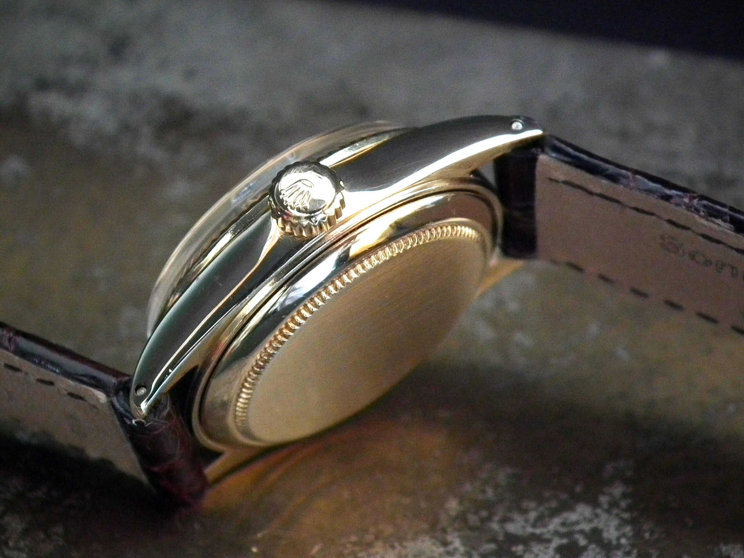 The solid 18ct yellow gold case is in excellent condition with only the most minor signs of wear. The case measures 30mm across, excluding the gold Rolex signed crown and 35mm long including the lugs. The inside case is signed ‘Montres Rolex SA Geneva Switzerland’, ‘6627’ and it has the appropriate hallmarks for solid 18ct gold. The serial number is 1.18million dating it to 1965.